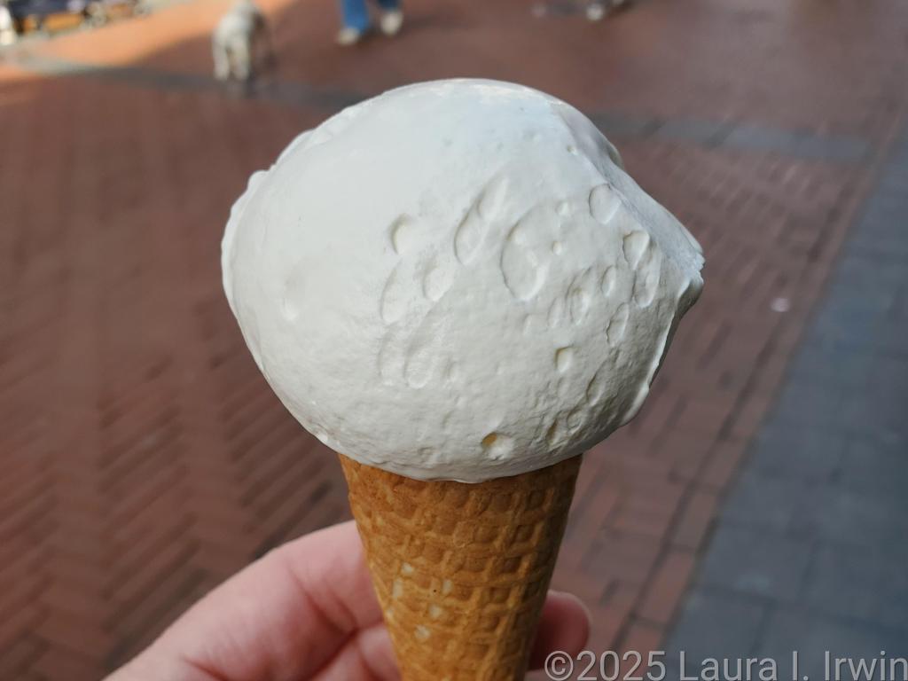 I got back to Amsterdam Centraal around 2:30PM and knew I needed an afternoon treat. I had ordered the child size portion of poffertjes so I could rationalize a small cone of whipped cream ice cream at Van der Linde. Yes, you read that right. And after ordering my small cone, I wished I had ordered a large. It literally tastes like someone made whipped cream into creamy, soft, heavenly ice cream. One bite, and wow! This place is popular for a reason. If I can see my way back there once more before I head home, I won’t be upset!