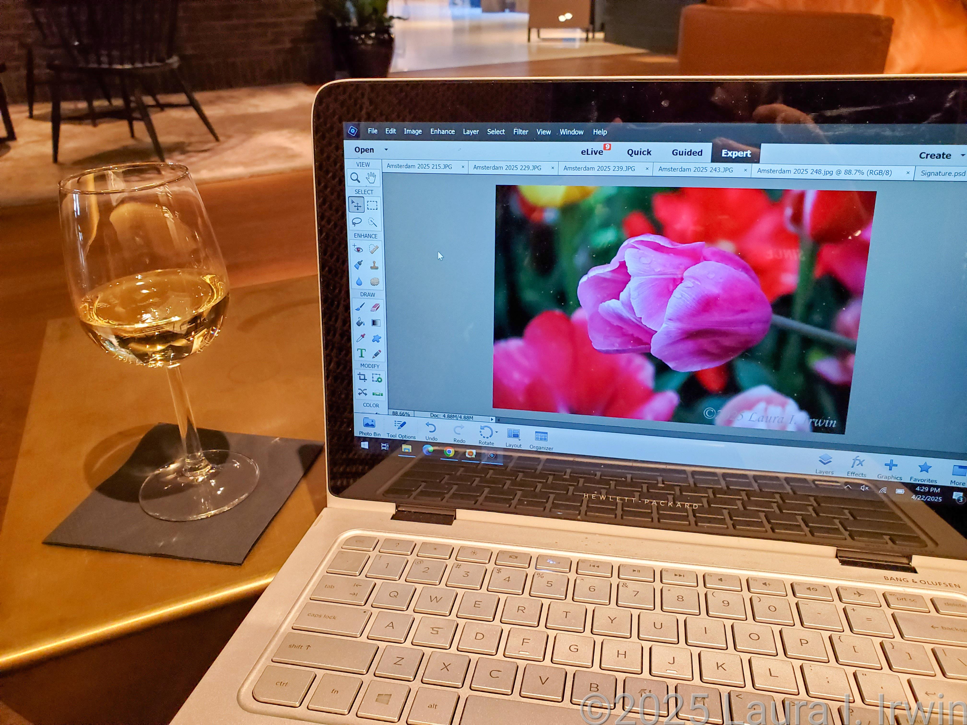 I went back to my hotel for the rest of the afternoon to relax. There is a happy hour every day from 4PM to 5PM and I decided to bring my laptop down to edit pictures while I enjoyed a glass of wine.