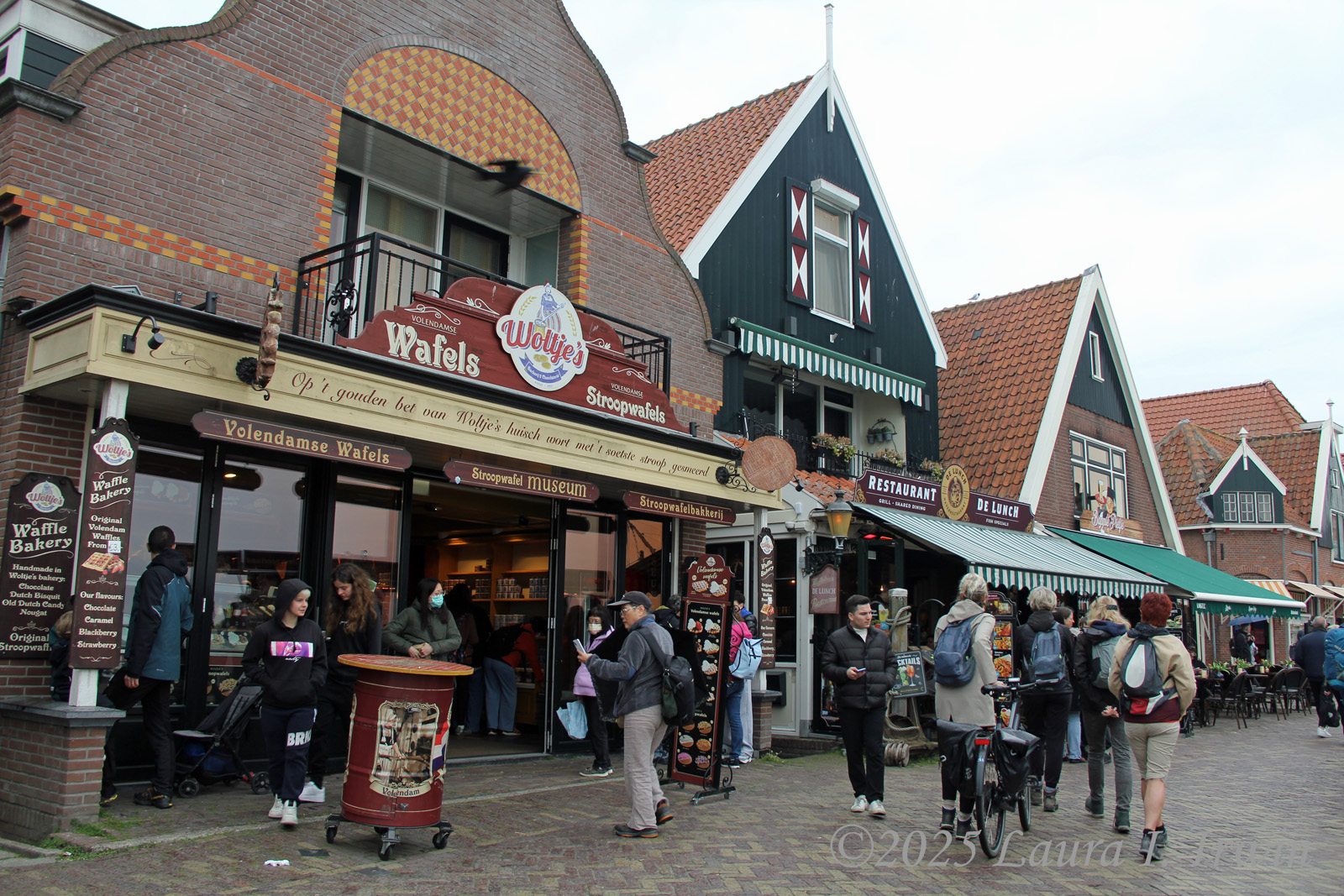 I had my fill of food in Volendam. Next up was a soft serve ice cream cone from a little stand by the harbor. I’ve had ice cream in other places in Europe that is super creamy and better than any in the U.S. This wasn’t particularly memorable, especially compared to yesterday’s whipped cream ice cream. My ice cream was followed closely by a traditional Dutch stroopwafel at Woltjes Backerij. I was able to watch the dough go into the waffle maker and then see the syrup slathered on. It was warm, delicious, and not too sweet.