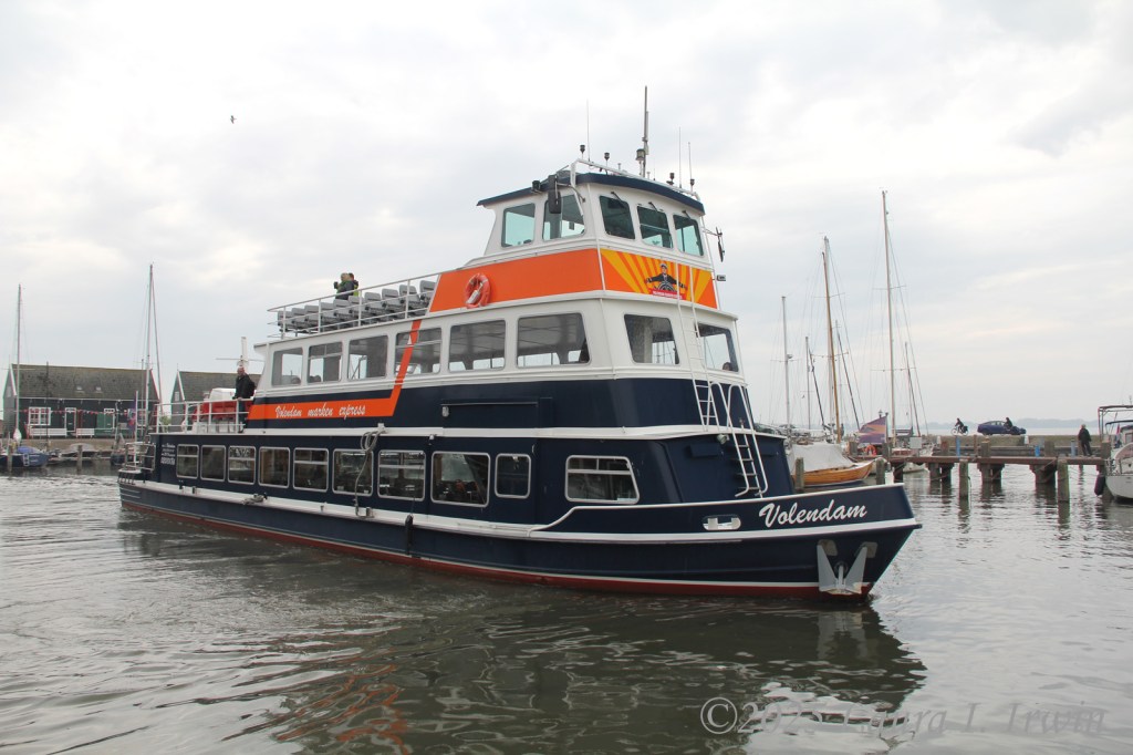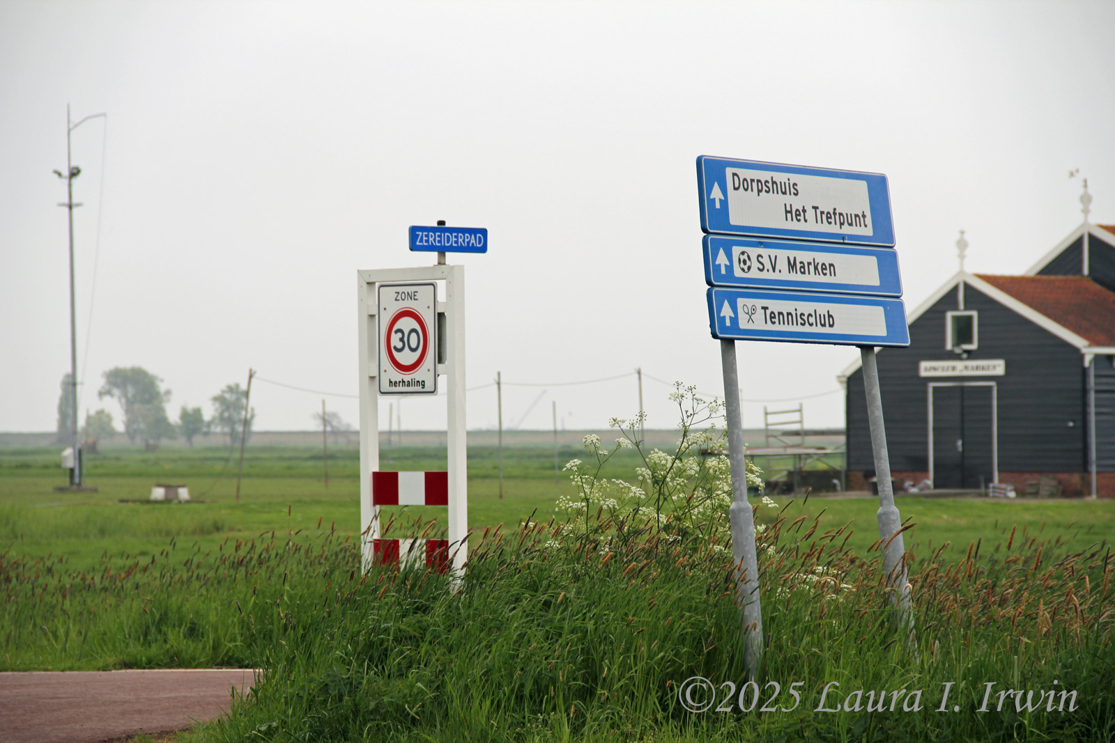From Volendam, I took a 30-minute ferry ride on the Volendam-Marken Express. I’ve learned quickly that what the weather forecast says for the day is not at all what the weather will be like. It was predicted to be cloudy and rainy all day but the sun was out until just before I left Edam. By the time I boarded the boat to Marken, though, a light drizzle had begun. I stayed inside on the boat as we crossed the Markermeer. Pulling into Marken Harbor felt like yet another world. This time the wooden buildings lining the harbor were darkly painted with white trim. Around the harbor are a handful of shops and restaurants, definitely different from Volendam. Marken actually used to be an island until 1957 when a causeway was built to connect it to the mainland.