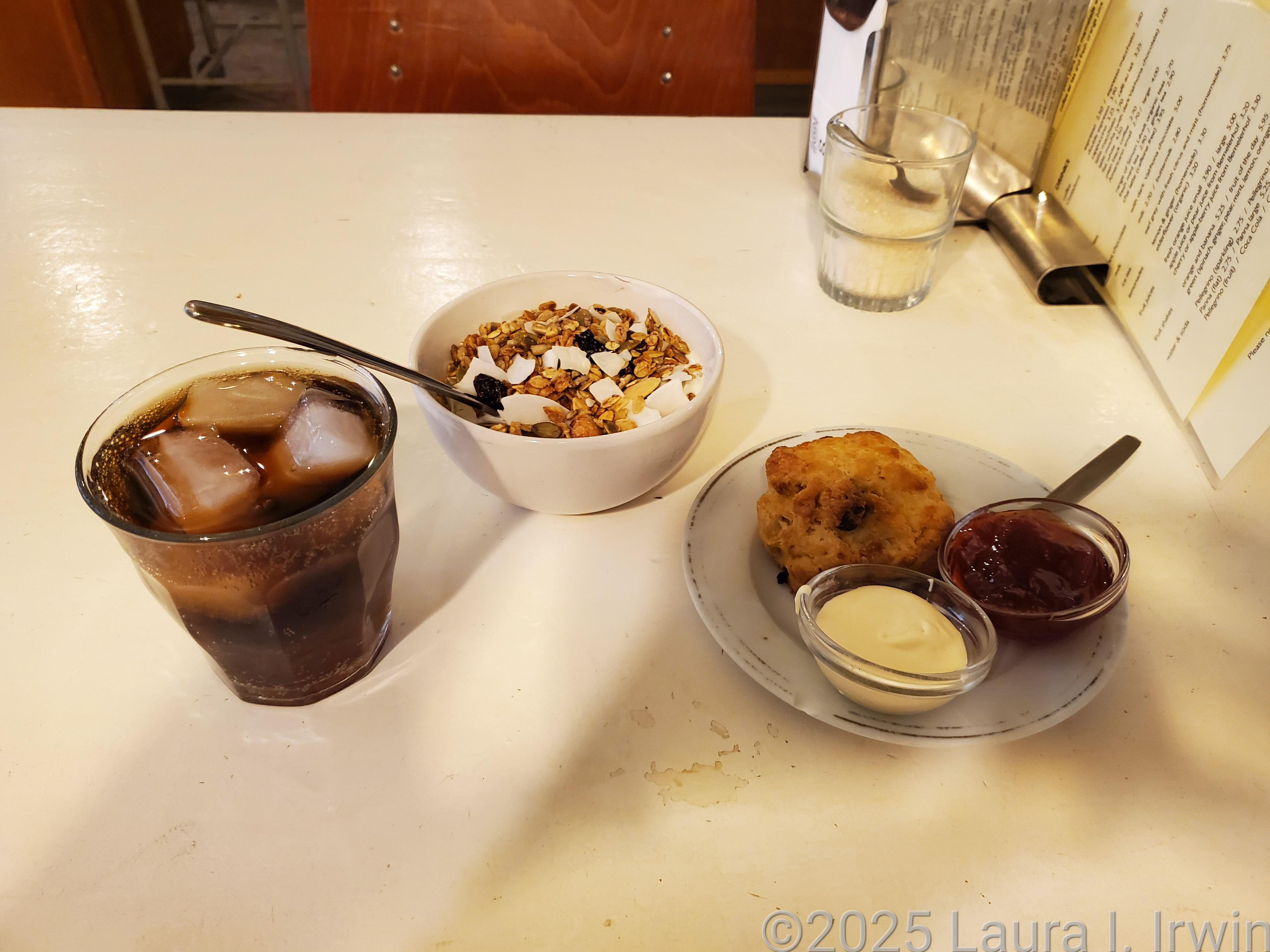 Not knowing if I’d be able to find any breakfast places in Edam, I stopped at a French patisserie near my hotel, Gebroeders Niemeijer, where I had a scone with jam and creme fraiche, yogurt with granola, and a Coca Cola Light (Diet Coke; so far I’ve only found Coke Zero so I was in Coca Cola heaven).