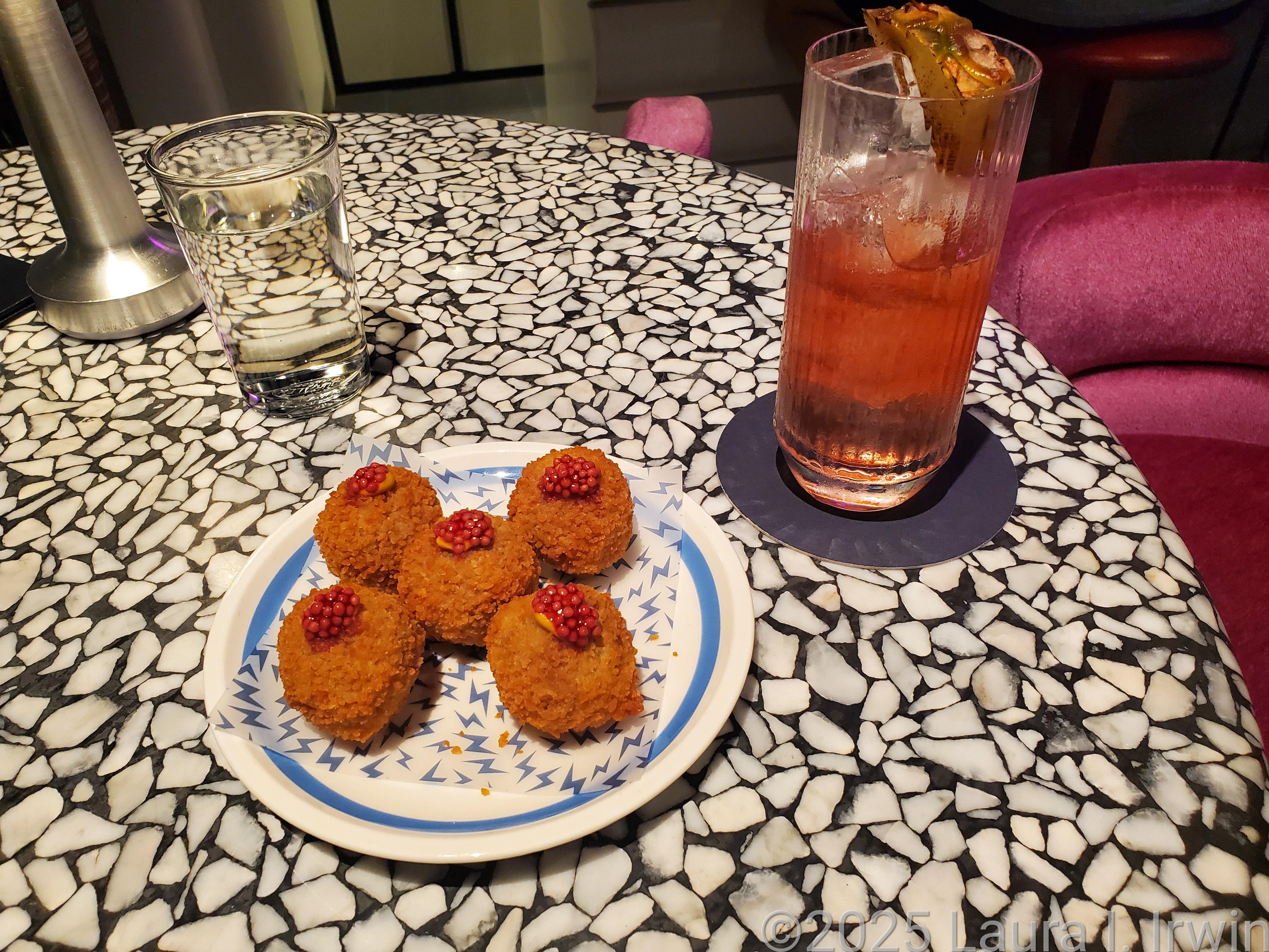 I headed to the bus stop to catch my return ride to Amsterdam Noord station and then a metro back to Centraal station. When I got back to my hotel, I grabbed my laptop and headed to the hotel bar, Super Lyan, for a drink and snack. A bar is not my usual scene, but I found a small high top table in the corner and settled in to edit pictures and work on this blog post. I tried my first bitterballen tonight – a traditional Dutch snack of meat and gravy that is formed into meatballs and fried. Not surprisingly, I didn’t care for them and only ate a couple. The bartender convinced me to try some apple drink (since they don’t have cider) that was a little too bitter for my taste. I was living on the edge tonight!