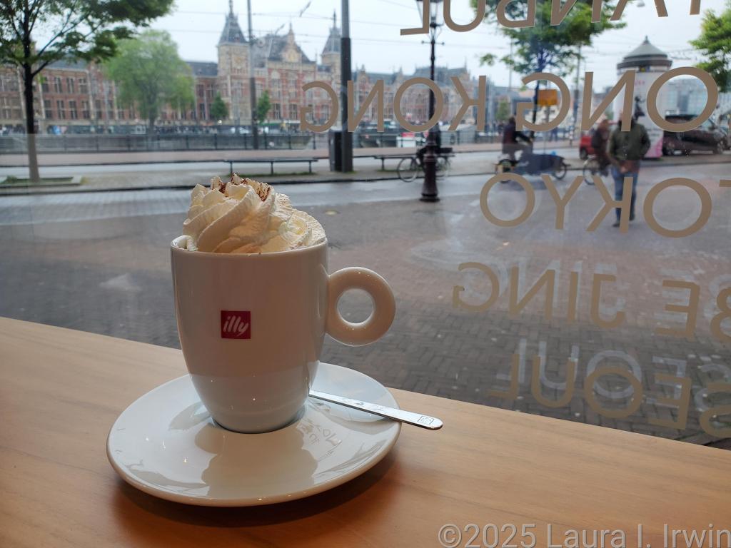 I spent a lazy morning getting ready and had another yogurt in my room for breakfast. I love going out to breakfast, but nothing here opens very early so I’ve been resigned to boring breakfasts several times now. I stopped at the Illy Caffè across from Centraal Station and had a hot chocolate while I did some people watching.