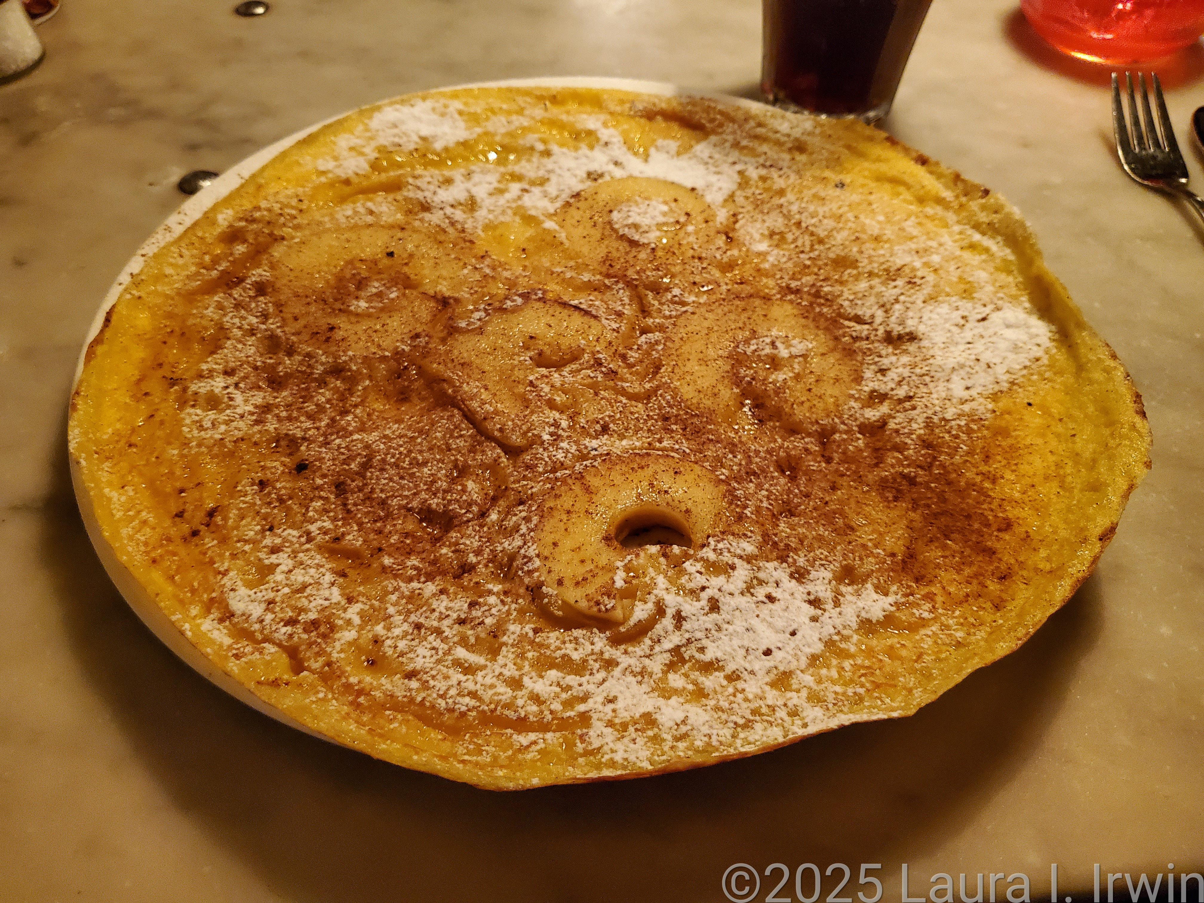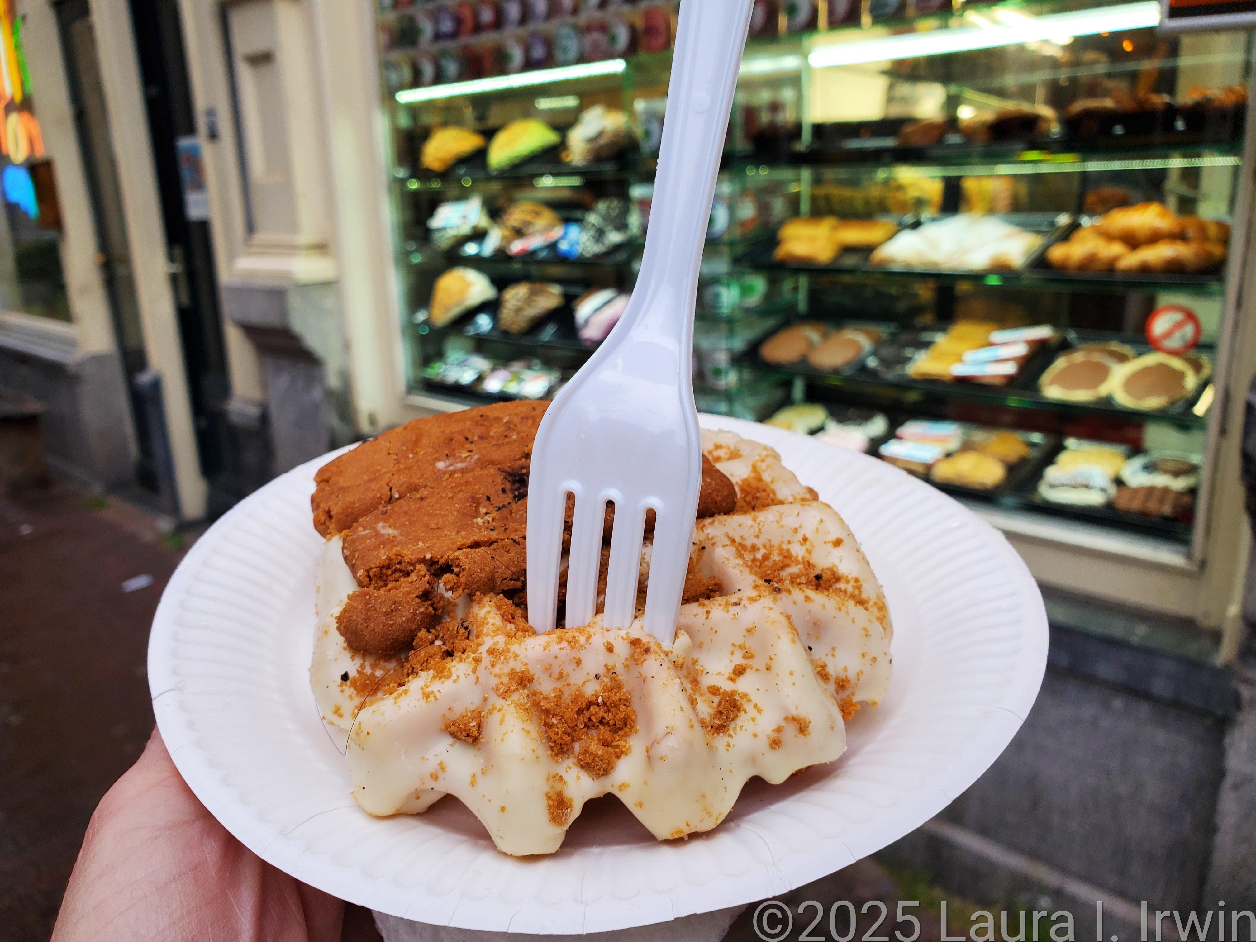 I stopped at my hotel for a minute and then walked over to the Pancake Bakery, housed on the lower level of an old 17th century warehouse once owned by the Dutch East India Company. The inside was dark and dimly lit with tons of character. My apple pancake was a plate-sized traditional Dutch style pancake, like a crepe, with the apples baked right in. The Dutch syrup (schenkstroop) in original and caramel flavors made a nice addition to the pancake. I kept going back and forth and putting on a little of each before finally settling on the caramel as my favorite.