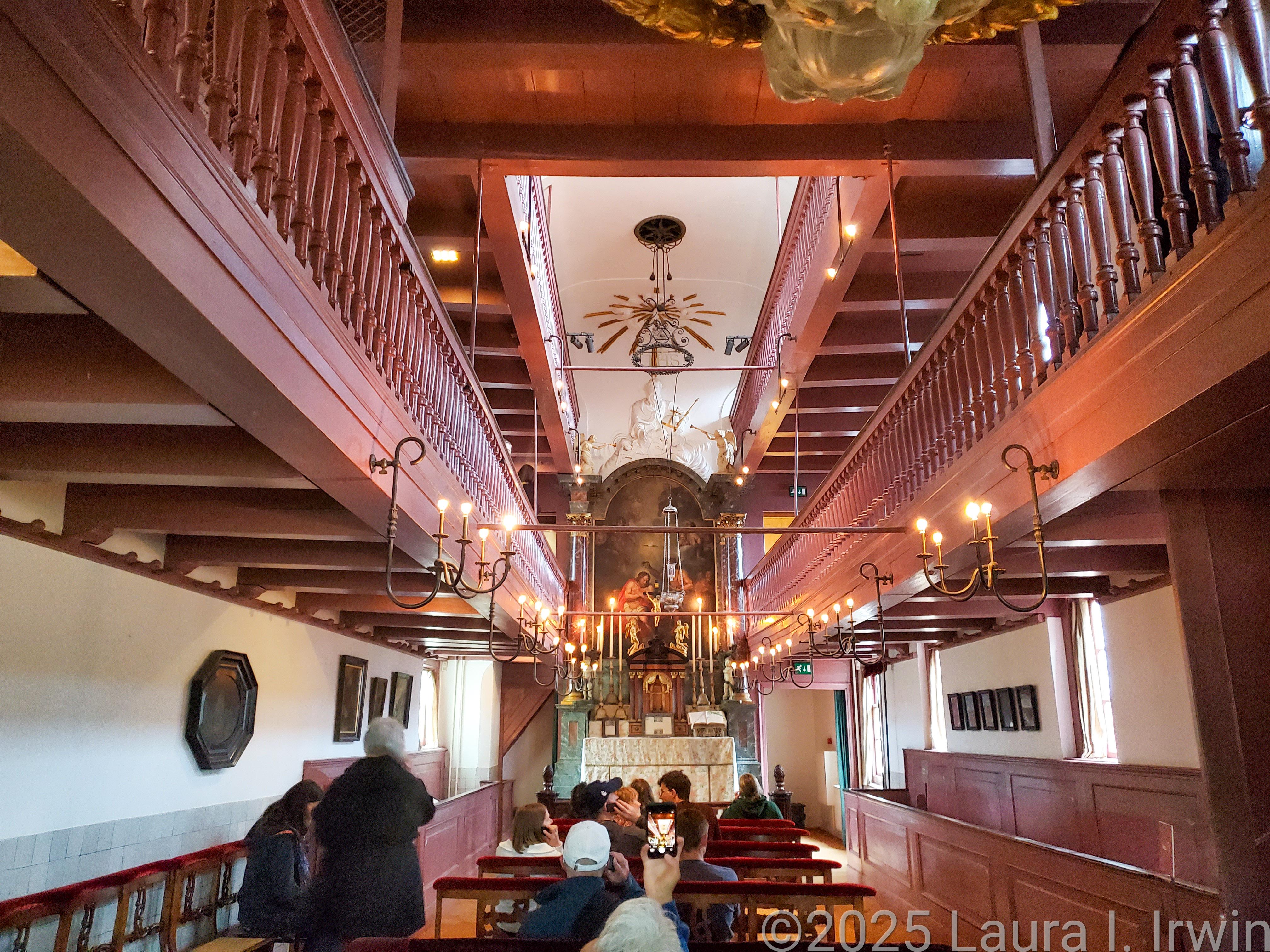 I walked from the Pancake Bakery over to the one museum on my list that I hadn’t seen yet: Our Lord in the Attic. If it sounds like an intriguing place, it is. Our Lord in the Attic is a hidden Catholic church that was used in the 1600s when Protestants had taken over Amsterdam and Catholics weren’t allowed to worship publicly. From the outside, it is an unassuming canal house. But the inside tells a different story. The top three floors of the home were converted by wealthy merchant Jan Hartman into a hidden 300-seat Catholic house church. Today, the church has been turned into a museum. You can visit the rooms of the canal houses on the bottom floors as well as the well-preserved church on the upper floors. It was quite impressive to visit and you would never know from the outside that there was a church there.