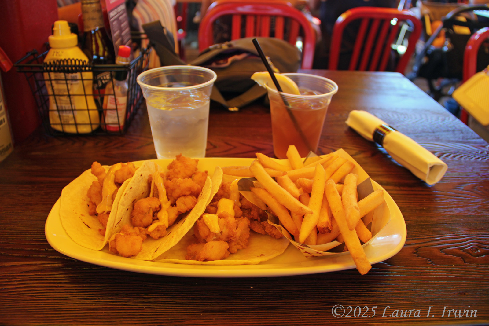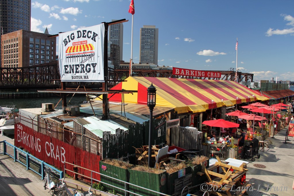 The ferry ride back was not nearly as exciting as the ride out, save for the planes landing right next to the boat at Logan Airport. When I got off the ferry, I followed the Harborwalk over to the Seaport where I enjoyed a late lunch/early dinner at The Barking Crab. The drink (peach vodka, iced tea, and lemonade) was delicious. So good, I ordered a second (holiday!). The fish tacos couldn’t have been more boring, but I do love a restaurant that puts malt vinegar on the table.