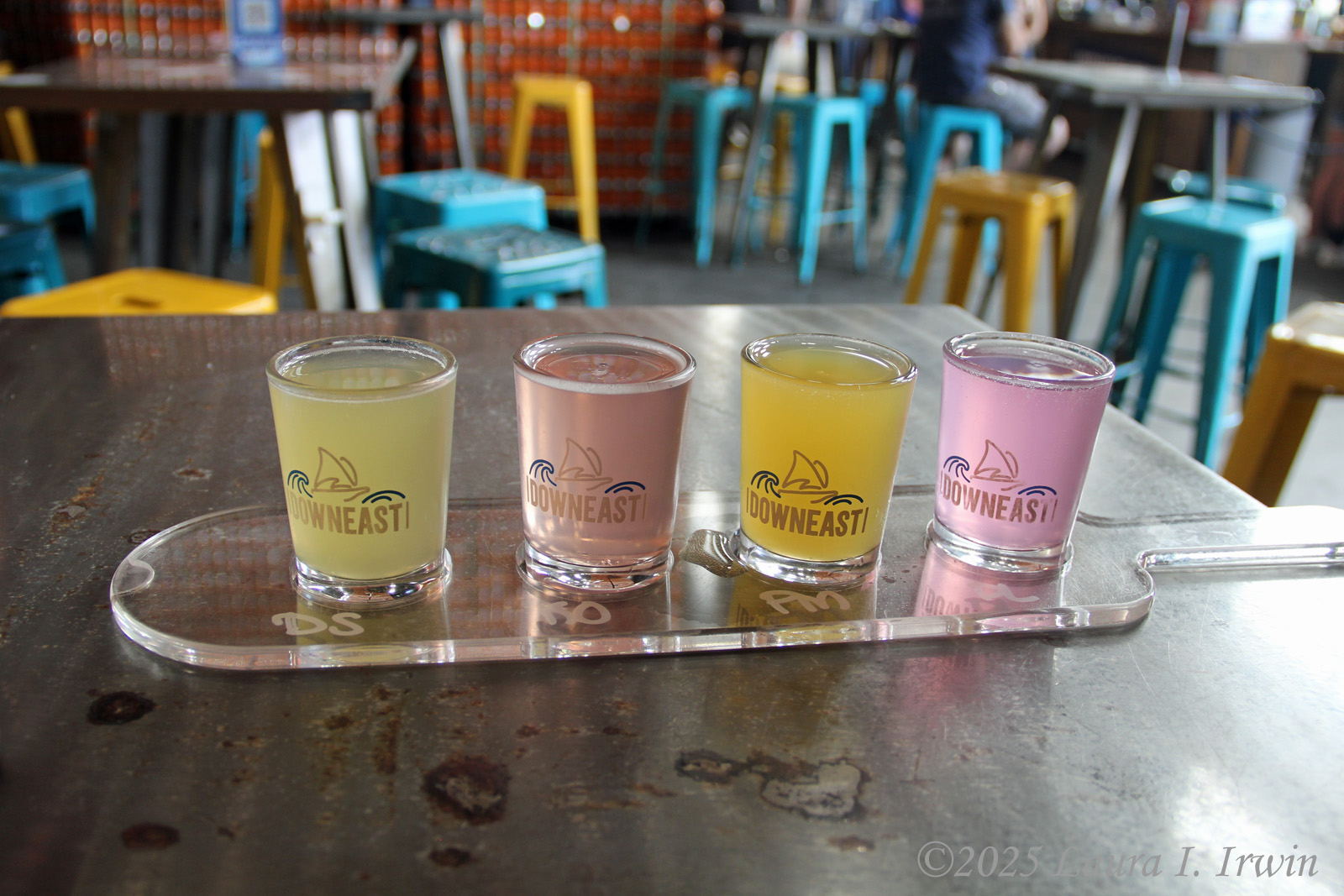 Next stop: cider! I have always wanted to visit Downeast Cider House in East Boston but it’s not so easy to get to and I just haven’t made the effort to get there. Today was the day. I took the blue line to Maverick and walked the half-mile to the cider house, where I enjoyed a flight of “Drier Side”, rosé, and peach mango cider, along with a hard pink lemonade. The pink lemonade was so good, I would have bought some to bring home while I was there if they had it in stock. But good news… I found it at the local liquor store so I’m all set!