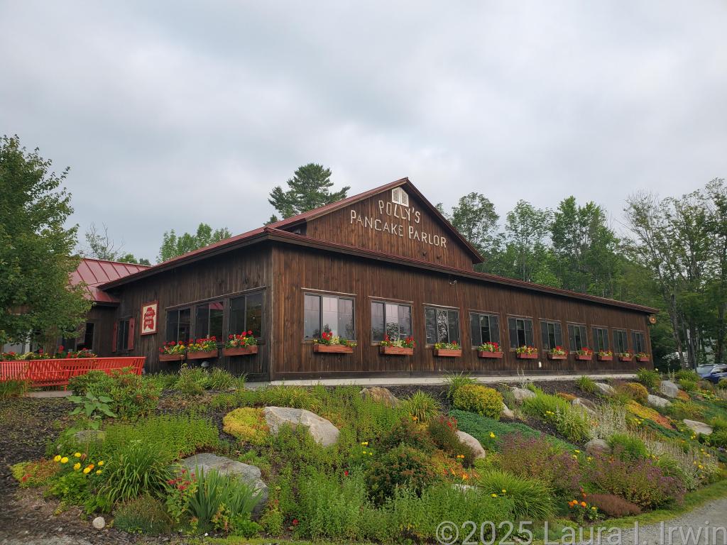 My first stop was at Polly’s Pancake Parlor in Sugar Hill, New Hampshire. A local institution, Polly’s is famous for its pancake samplers where you can mix and match batters and toppings. I went with plain (which I slathered liberally with their maple spread and later bought a jar to bring home), plain with chocolate chips, and gingerbread. I know it’s not really the right season for gingerbread, but their gingerbread pancakes are insanely good and I always include those in my sampler.