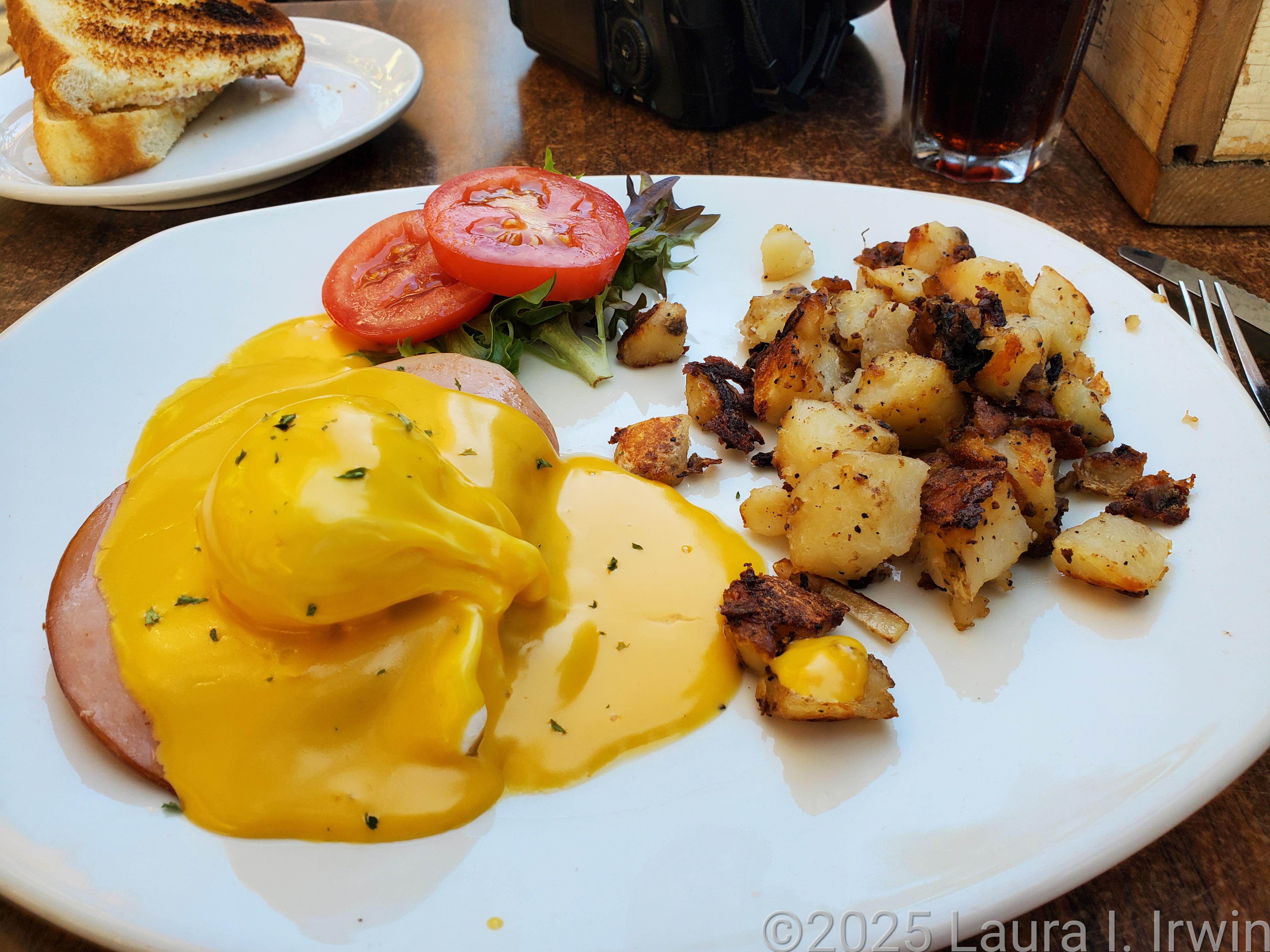 But first, breakfast. Every single time I googled “best breakfast in Québec”, Le Buffet de L’Antiquaire came up on the list. So I did what every dedicated breakfast eater does. I went to check it out. It was a 15-minute downhill walk from my hotel, so you know what that meant going back. I considered it a warmup for the climbing I would be doing later on. I settled into a table on the outdoor patio and ordered eggs Benedict with Black Forest ham. It was actually very good and the hollandaise sauce was rich and thick.
