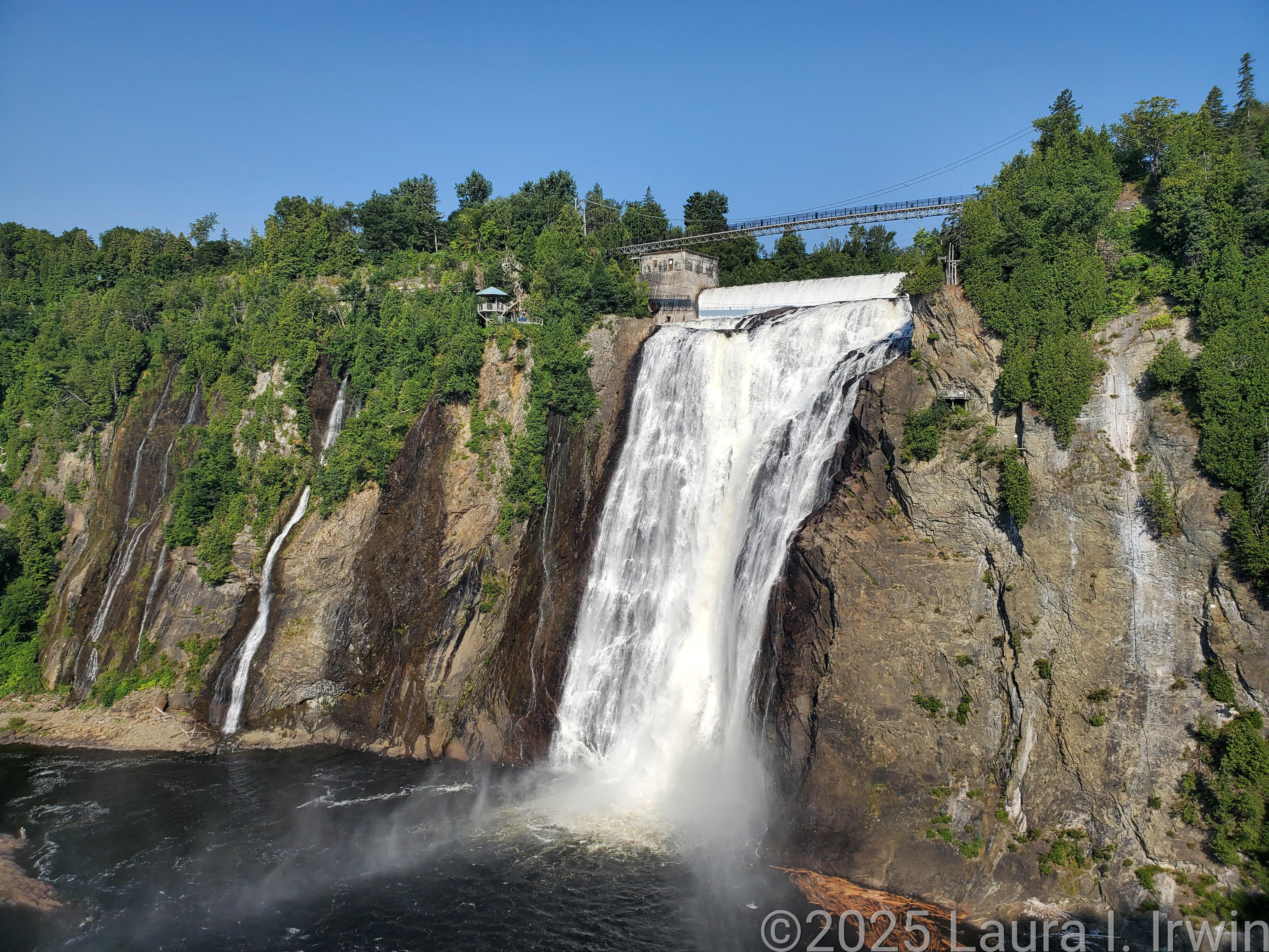 It feels really strange to me to be in a different country and yet have my own car with me. I don’t know why that feels so strange because I’ve driven my own car to Canada before, but it does. Anyway, I hopped in my car and headed to Montmorency Falls on the way to Île d’Orléans. At 272 feet high, Montmorency Falls is actually taller than Niagara Falls. I got there before the crowds arrived and walked around the base of the falls before climbing the 487 steps to the suspension bridge over the falls. From the top of the falls, you can see downtown Québec as well as the bridge to Île d’Orléans, though the skies were quite hazy today.