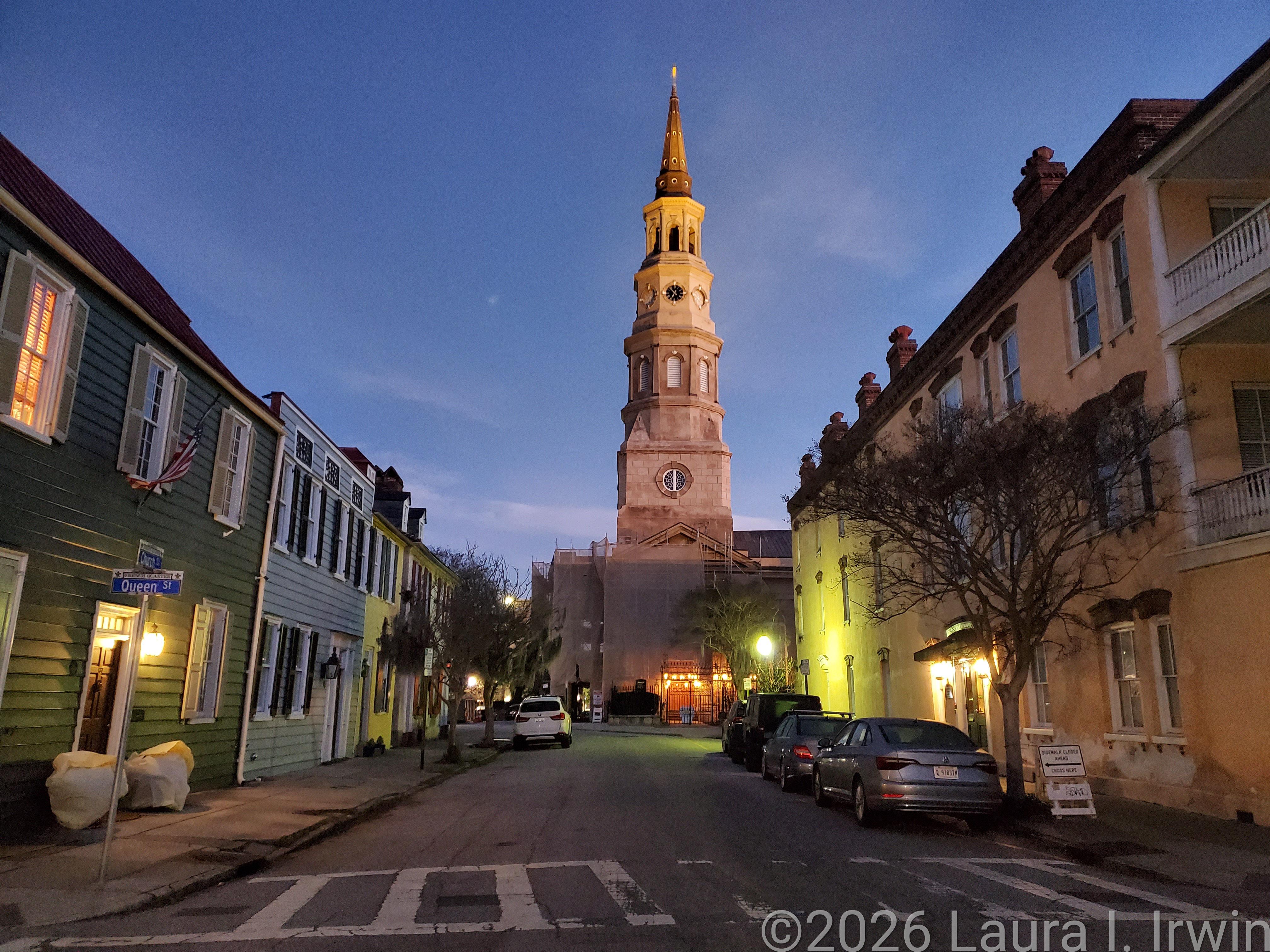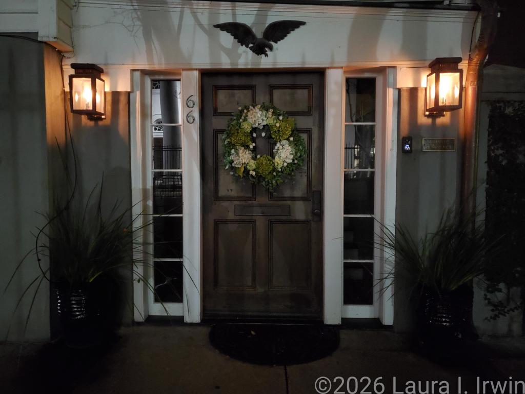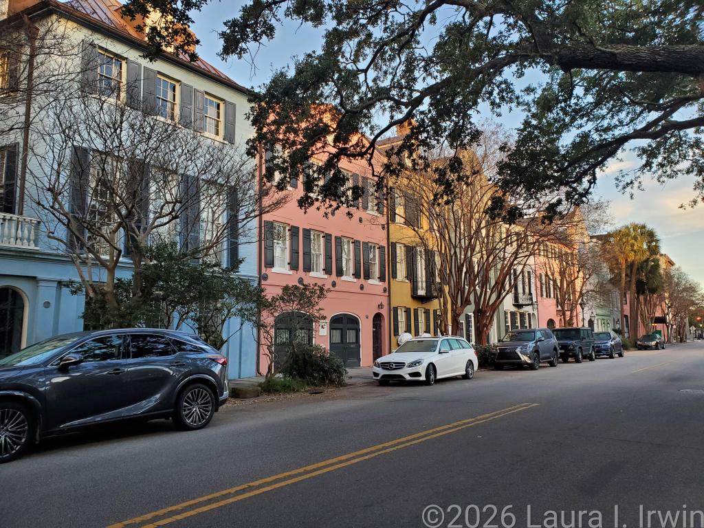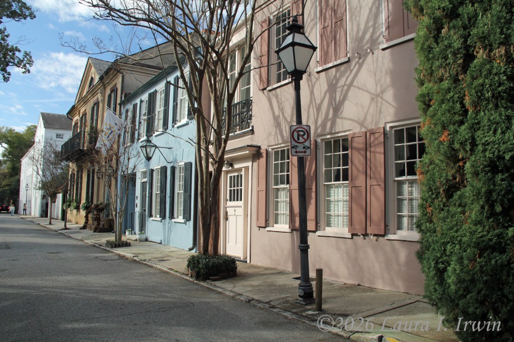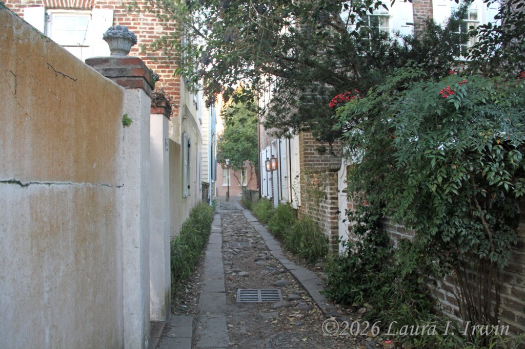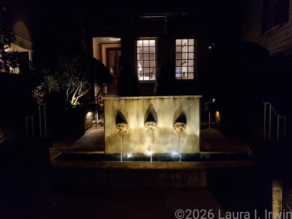 My evening consisted of walking back to the Historic District and wandering the same streets and alleys I wandered earlier in the day, this time lit by gas lamps and punctuated by the gentle sounds of water in courtyard fountains. Upper King Street where I had dinner (filled with stores, restaurants, and bars) and the Historic District where I enjoyed my post-dinner walk feel worlds apart, though they are only separated by a mile or so. I was very tired so my evening didn’t extend too late. I don’t have anything planned for tomorrow until 10AM, so I’m hoping for many more hours of sleep tonight than I got last night.