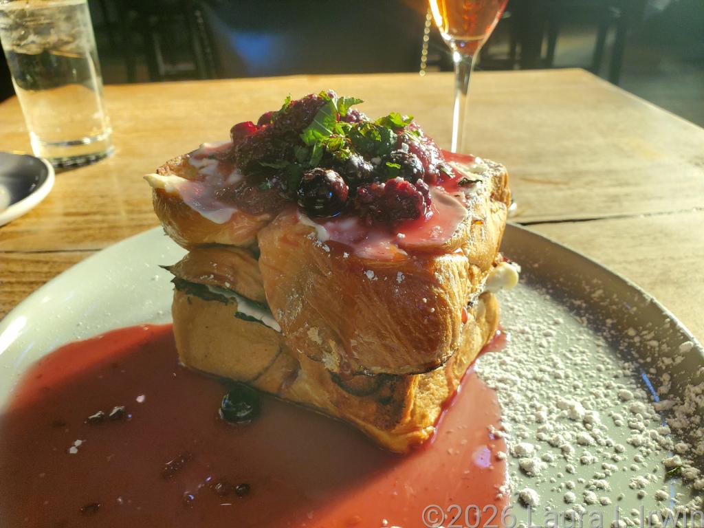 I made a reservation for brunch at Church and Union, a popular restaurant housed inside a former Baptist church. I had high hopes, but the meal kind of fell flat. I was especially looking forward to the praline French toast (listed on their website menu); alas, they no longer have that and instead feature a Grand Marnier French toast with berries, cream cheese, and some type of green herb on top. I mean, I love herbs; but on pizza and pasta, not French toast. The cranberry mimosa was (obviously) delicious, as was the scone they delivered to start my meal, but I was already looking forward to what I hoped would be a redeeming dinner.
