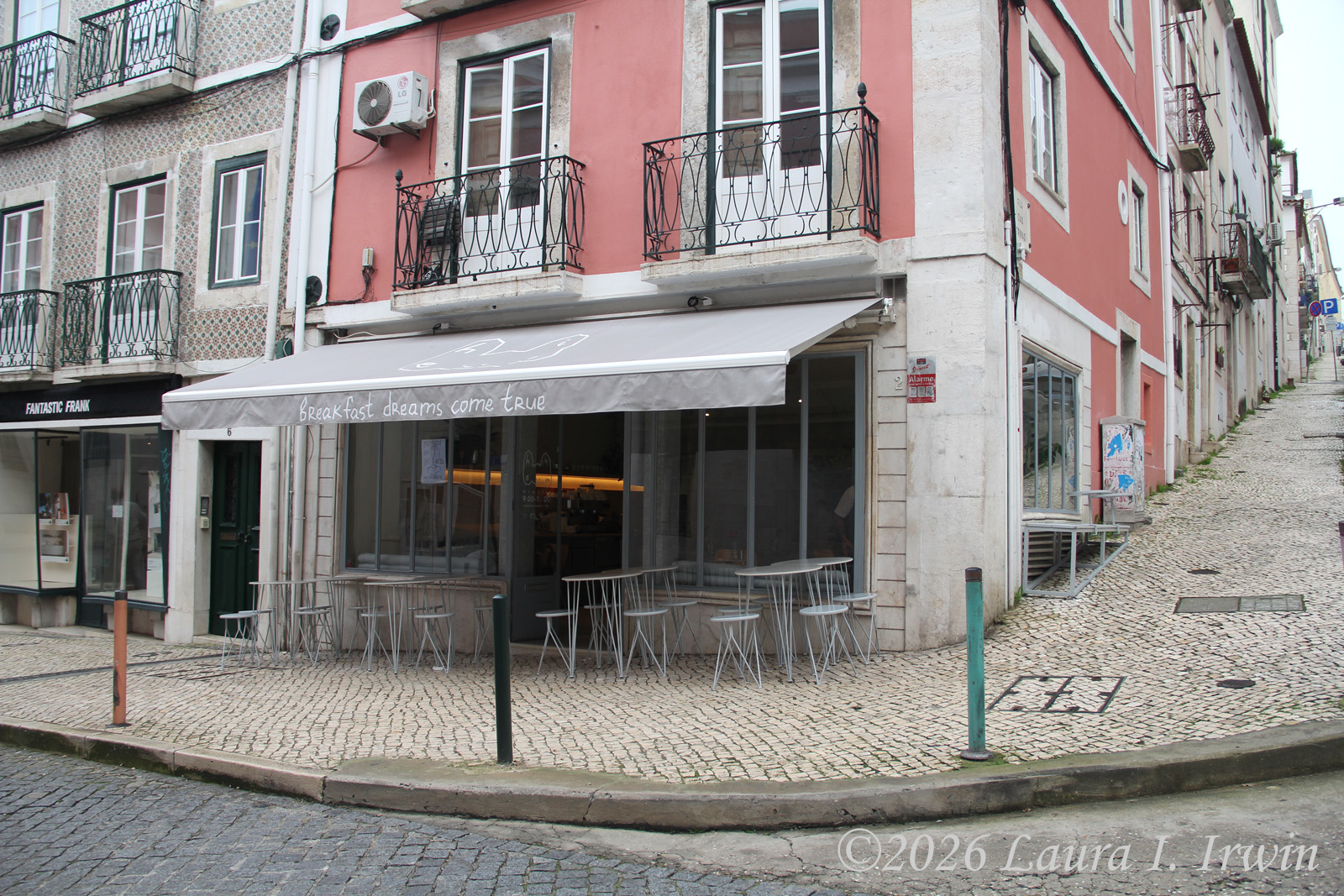 Before breakfast, I wandered, which is one of my favorite things to do in a new city. The streets in Lisbon hold so much charm and unique character that it was easy to get lost wandering the streets and hills near my hotel as I made my way in the general direction of Heim Cafe. Shortly before breakfast, the clouds turned to a light drizzle, so I was happy to take refuge in the tiny cafe with a table by the window.