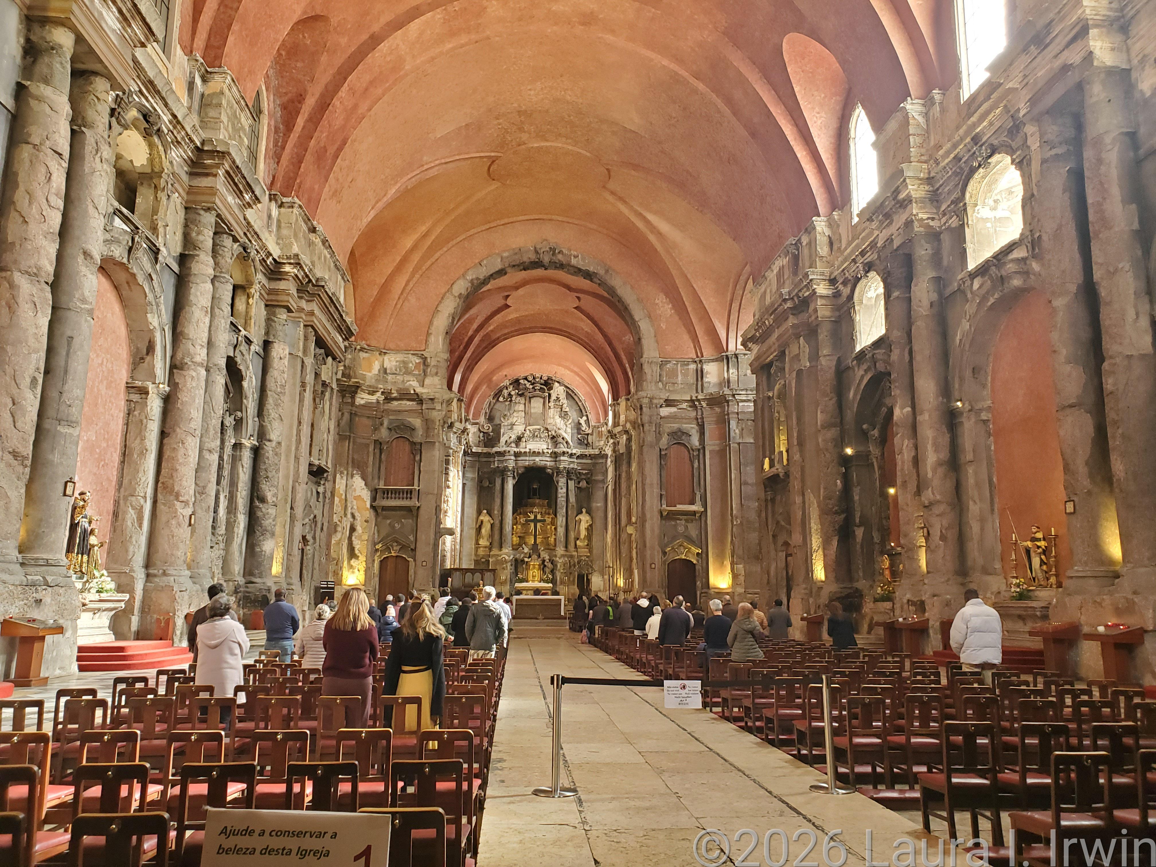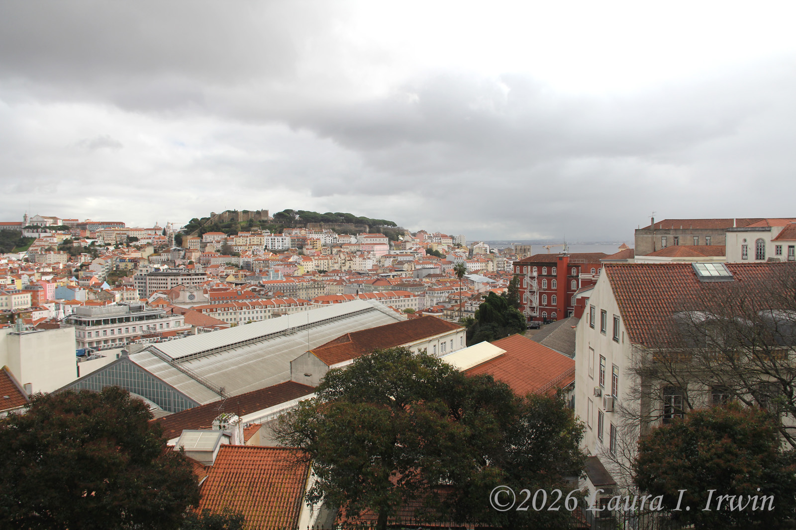 After breakfast, I walked back to Praça do Comércio where I started listening to and following Rick Steves’ Lisbon Walk as an audio guide on my phone. I loosely followed the recommended route as I learned about the history and culture of Lisbon. The route took me through the Baixa, Bairro Alta, and Chiado districts and visited squares, churches, and miradouros. It was alternately sunny and drizzly during my walk so I was simultaneously wishing I had grabbed my sunglasses and also grateful I had a hood on my jacket.