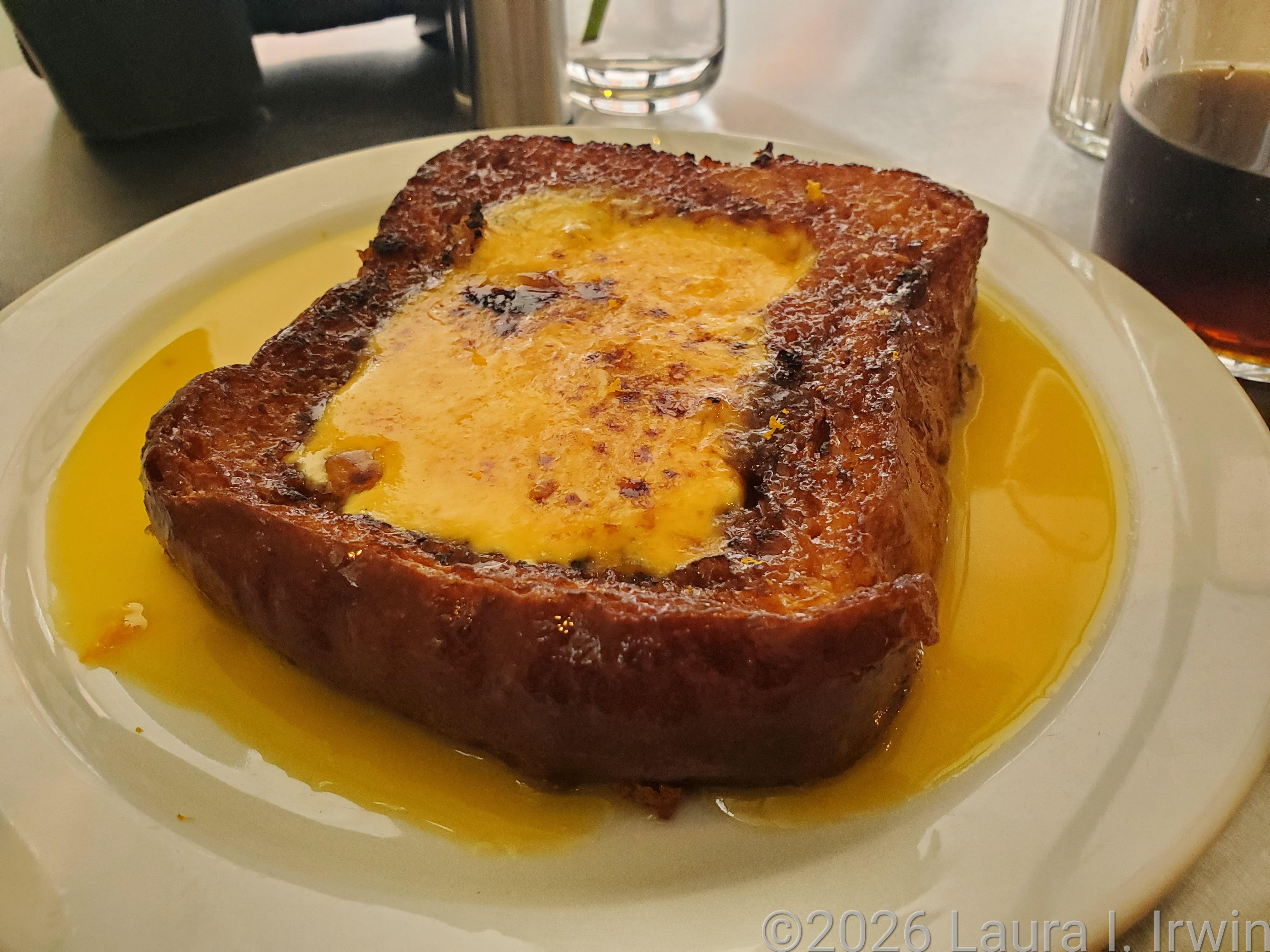 Heim Cafe was on my list of places to try for breakfast and was one I did not want to miss. The awning out front proclaims, “Breakfast dreams come true”. It was obviously right up my alley, what with my propensity for sweet and fattening breakfasts. Crème Brûlée brioche with orange citrus sauce was my breakfast of choice this morning. I wouldn’t say my breakfast dreams came true, but it was good.