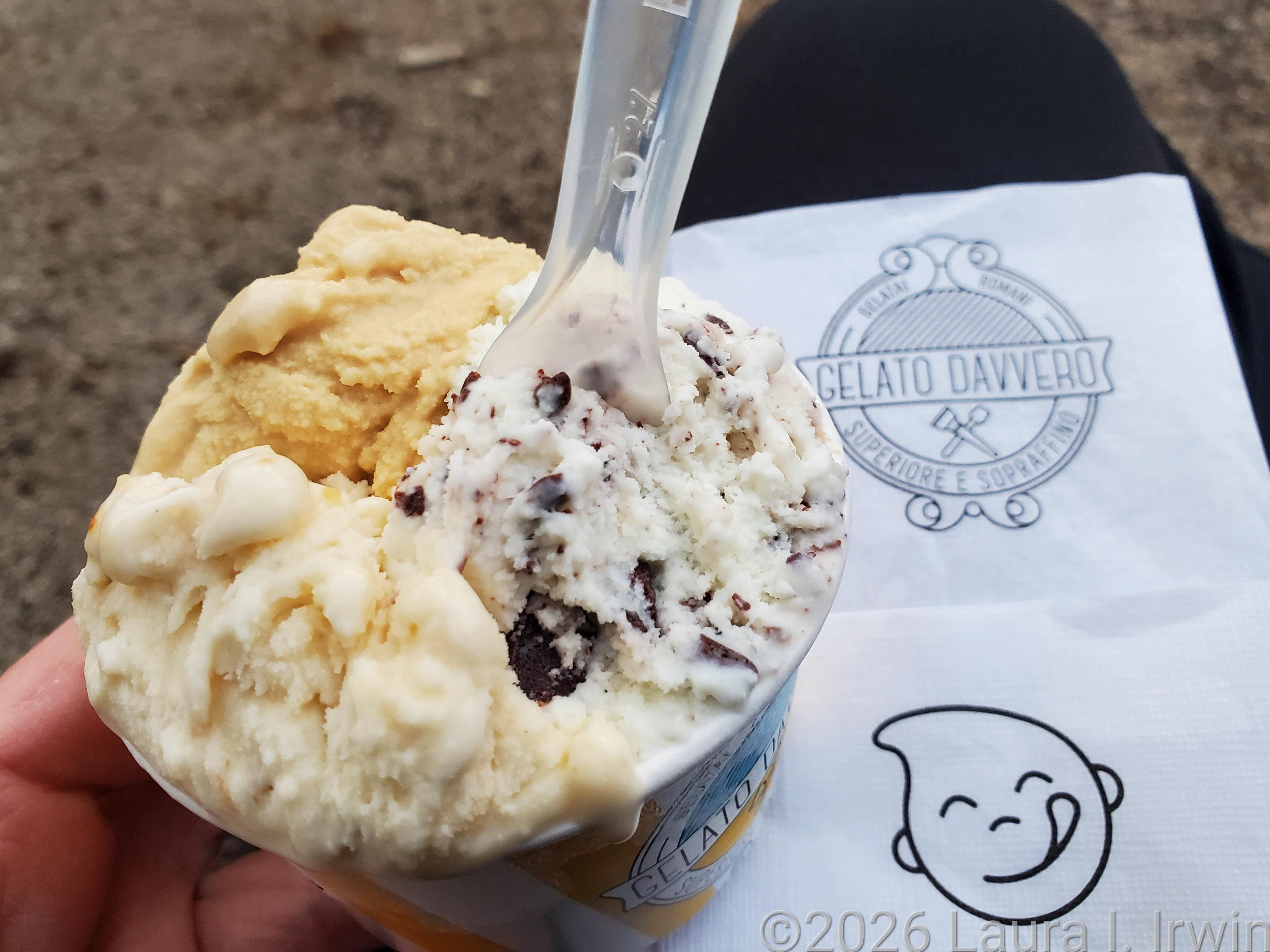 I ended my evening with a stop at Gelato Davvero in the Time Out Market. I added three scoops (stracciatella, salted caramel, and pastel de nata) to a cup and brought my gelato to the small park/garden next to the market to enjoy al fresco.