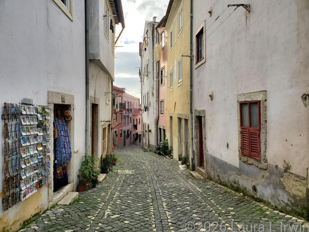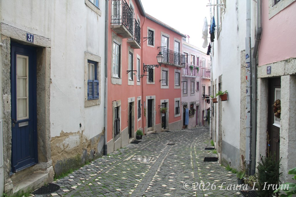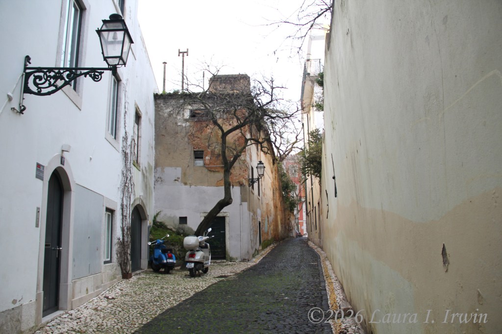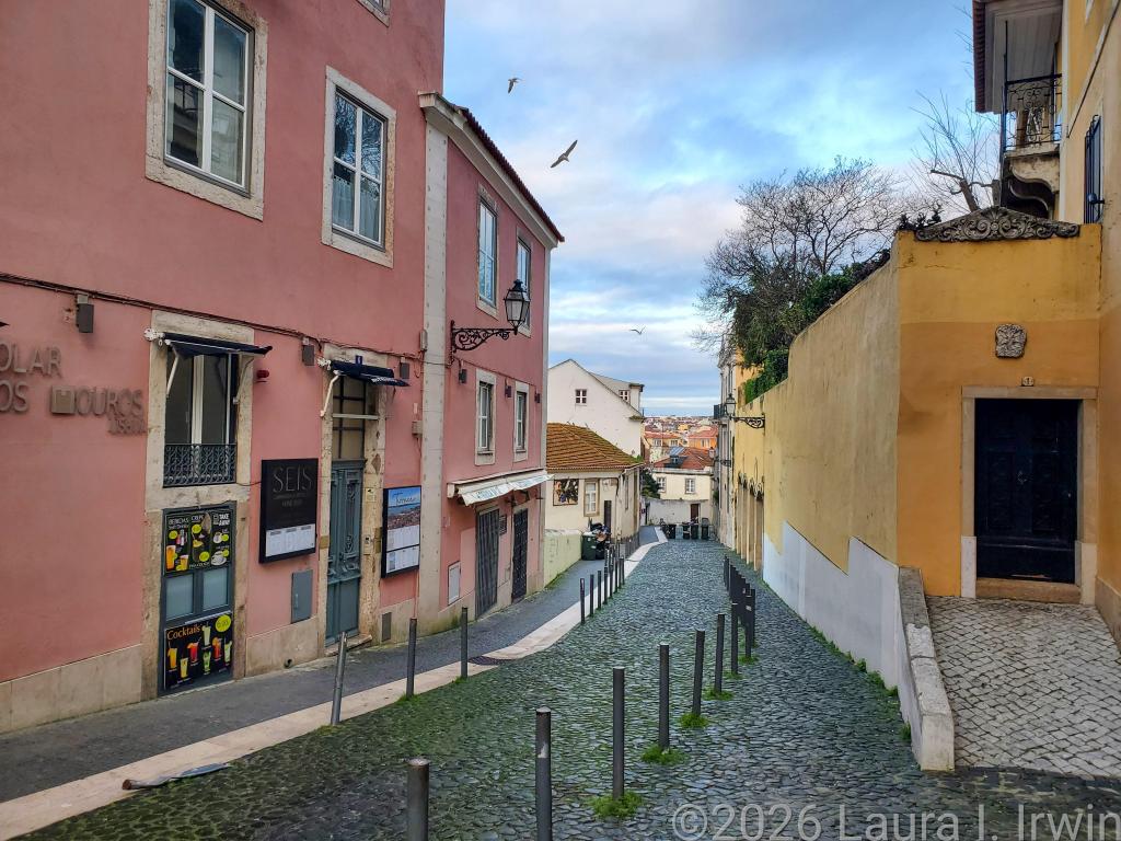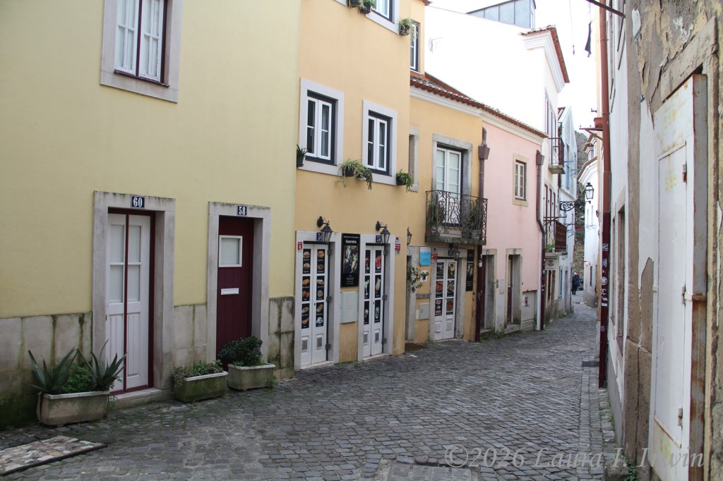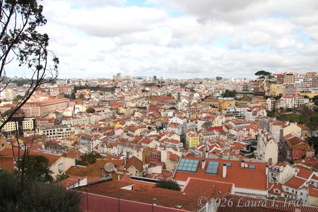 My favorite style of travel (in recent years anyway) is slow travel, where I take the time to savor and enjoy where I am without rushing from place to place checking things off a list. And that’s exactly what I did today. My day started with a pre-dawn walk around Lisbon, included a visit to a castle, a convent, and the remains of a ruined church, and ended with a traditional Portuguese meal of bacalhau com natas.