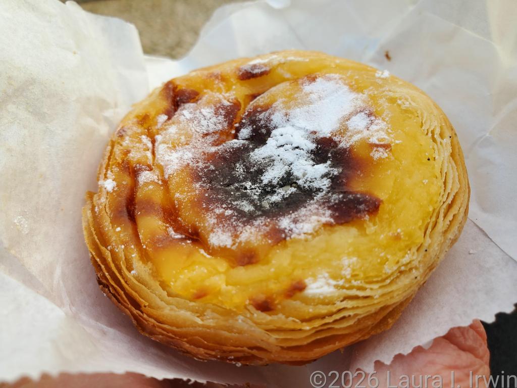 I wandered for a while and then headed to Pasteleria Santo Antonio to pick up the makings of a breakfast picnic. I brought my coconut pastry and pastel de nata to Miradouro de Santa Luzia, found a bench, opened the bag, and was immediately descended upon by a flock of pigeons. They patiently watched me eat each bite while my fellow humans had a nice laugh. The pastel de nata from Santo Antonio has won awards, but I have to say I enjoyed the one I had yesterday more.