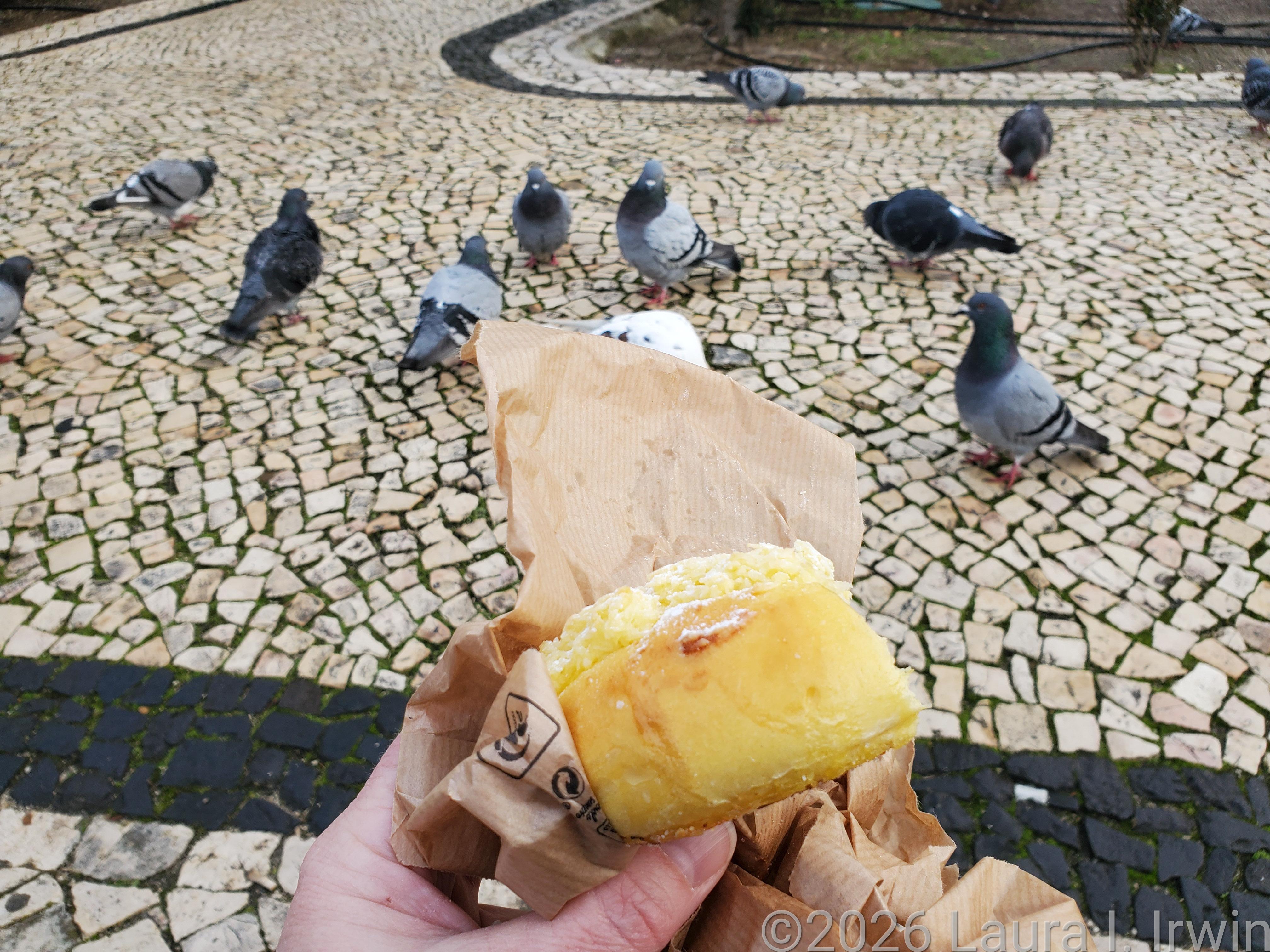 I wandered for a while and then headed to Pasteleria Santo Antonio to pick up the makings of a breakfast picnic. I brought my coconut pastry and pastel de nata to Miradouro de Santa Luzia, found a bench, opened the bag, and was immediately descended upon by a flock of pigeons. They patiently watched me eat each bite while my fellow humans had a nice laugh. The pastel de nata from Santo Antonio has won awards, but I have to say I enjoyed the one I had yesterday more.
