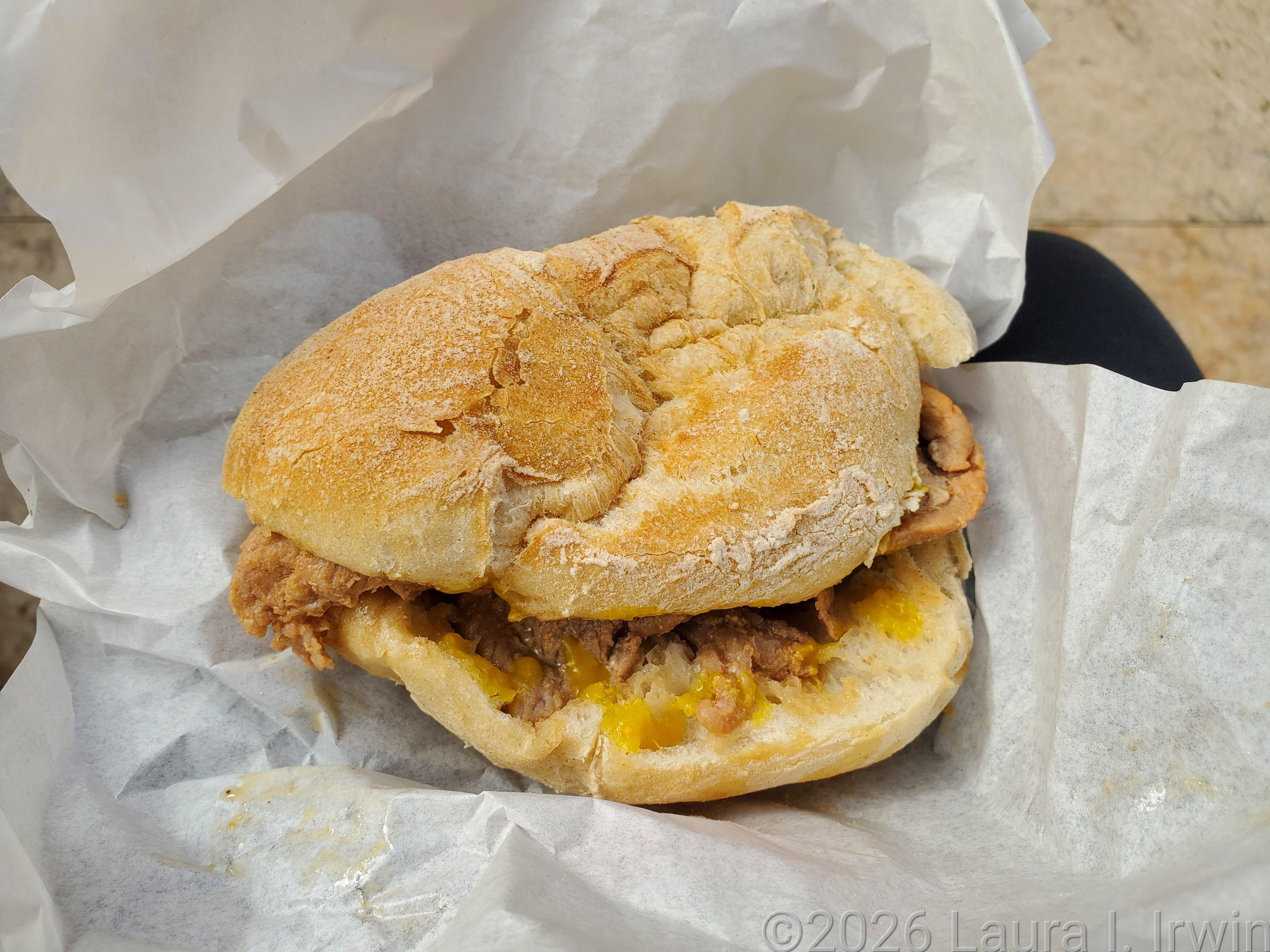 Bifanas do Afonso is one of the most popular spots in Lisbon for bifanas, a Portuguese marinated pork sandwich. And the line reflects its popularity. I waited about 20 minutes to get my hands on the infamous sandwich, smelling the aroma of the pork as I got closer. The restaurant is mostly a takeout operation so I took my sandwich and sat on a nearby bench to enjoy my taste of heaven. And heavenly it was. The bread was sooo soft, the pork just slightly chewy and very flavorful, and I managed to put just the right amount of mustard on to enhance the flavor.