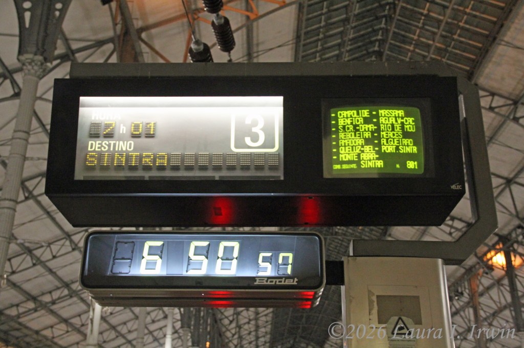 I started my day with a walk to the Rossio train station in Lisbon. It was still completely dark as I navigated stairs, hills, and tiled sidewalks to catch the 7:01AM train to Sintra. Rossio station is bright and modern and was nearly deserted at the early hour.