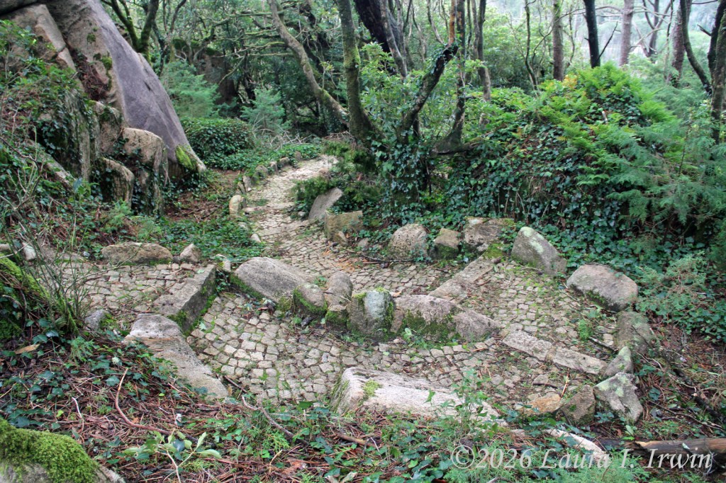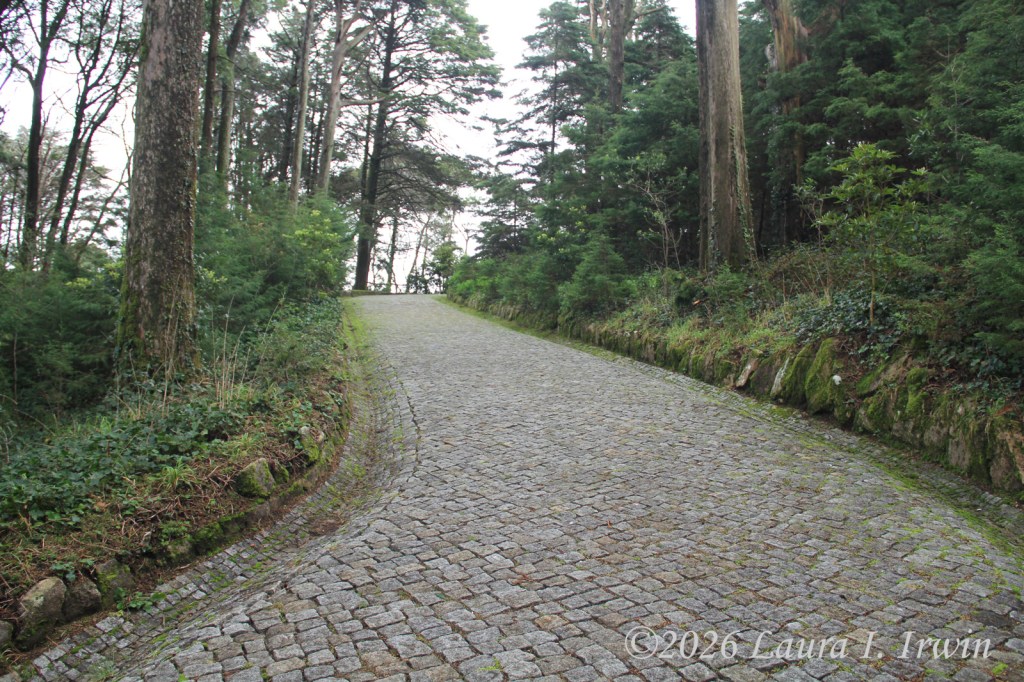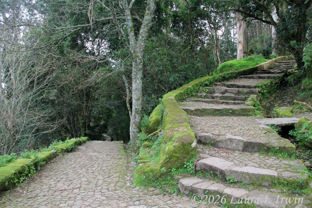 I couldn’t figure out where the bus pick up location was in town so I walked back to the train station and tourist office. Good thing I did because I learned that the buses to Pena Palace can’t get all the way to the palace right now due to damage from recent storms. Long story short, I ended up taking an Uber (much cheaper than a bus pass) to Miradouro de Santa Eufémia, the closest driveable point to Pena Palace. I then had to hike about 25 minutes to get to the entrance via a forest trail. And when I say “hike”, I literally mean steep uphill and downhill climbs. Sintra is very steep and hilly. I walked about 8 miles today, not factoring in elevation gain, and I know I will be feeling it tomorrow.