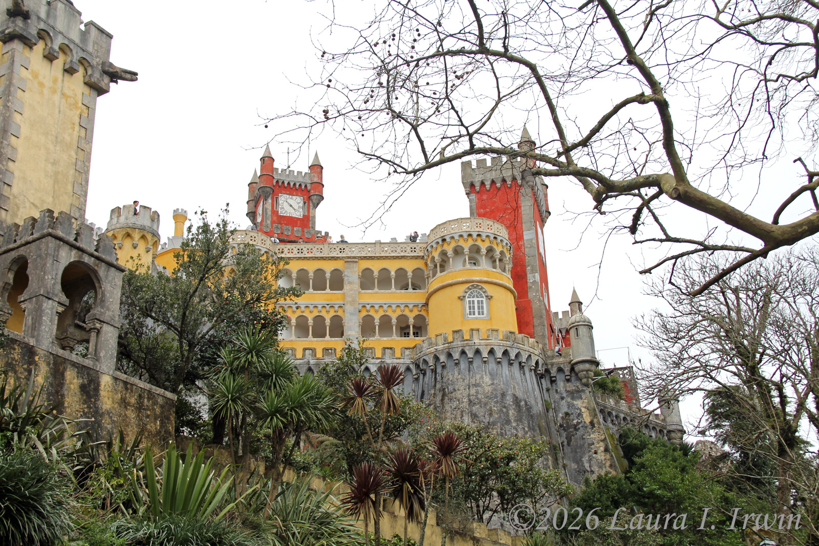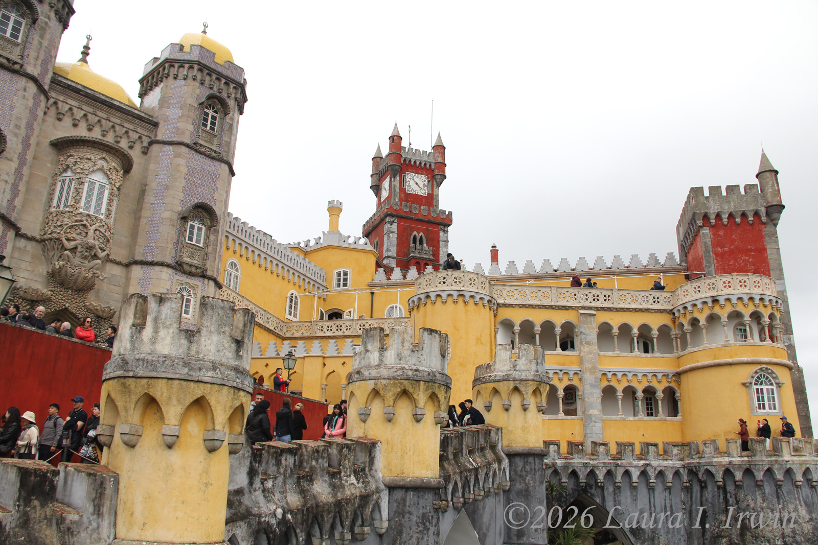 The trail was much longer and steeper than I expected and I was exhausted already by the time I finally got to Pena Palace. I took some pictures of the colorful exterior and walked around the terraces. It was extremely crowded for a cloudy Tuesday in February; I can’t imagine the mobs on a sunny summer day!