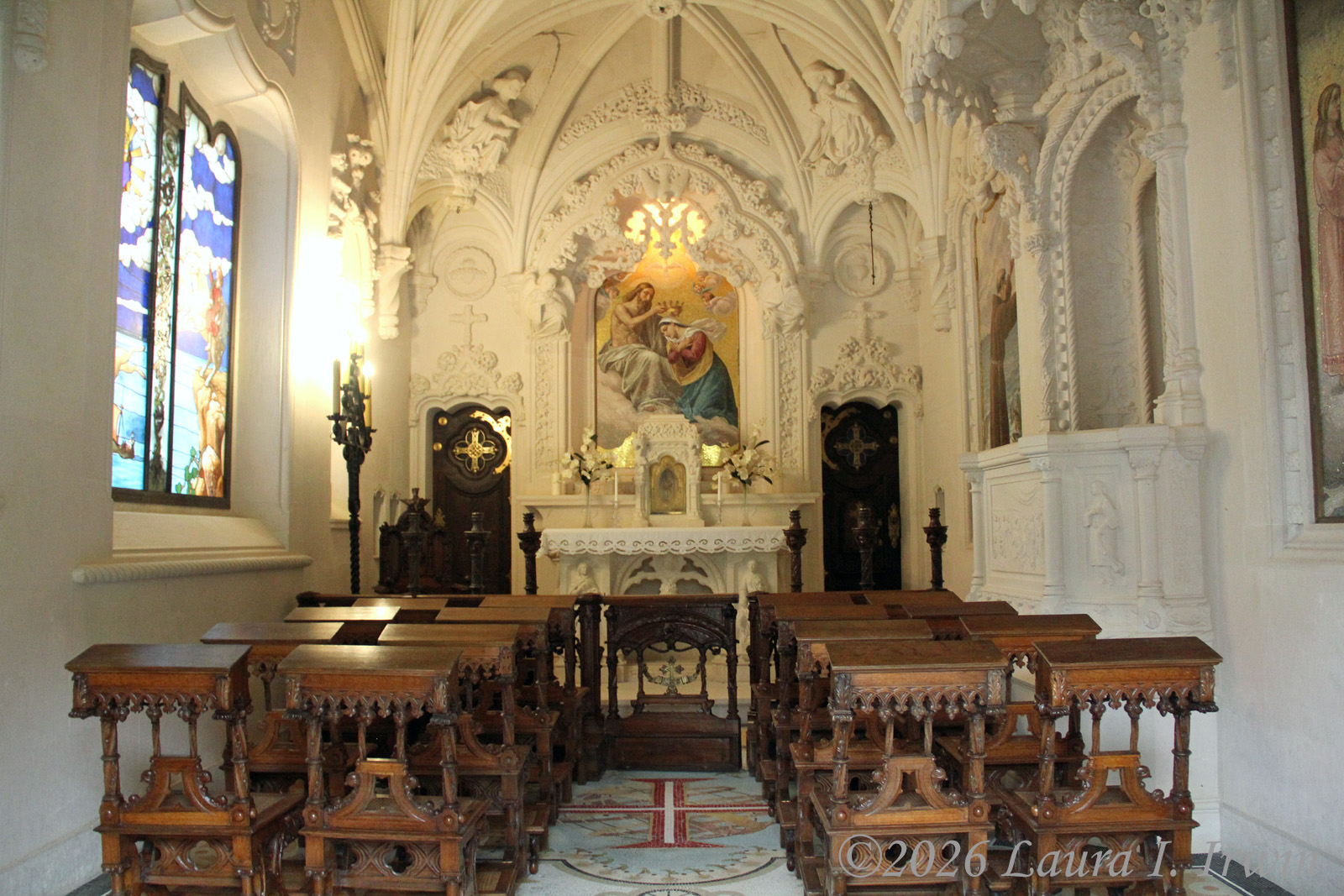 I didn’t want to go inside the palace because I had read reviews that it’s not worth it. Instead I stuck to the outside and first explored the park surrounding the palace. I took a trail to the high cross and then looped back to the palace. Everything is vibrant green and many of the rocks, trees, and trails are covered in moss.