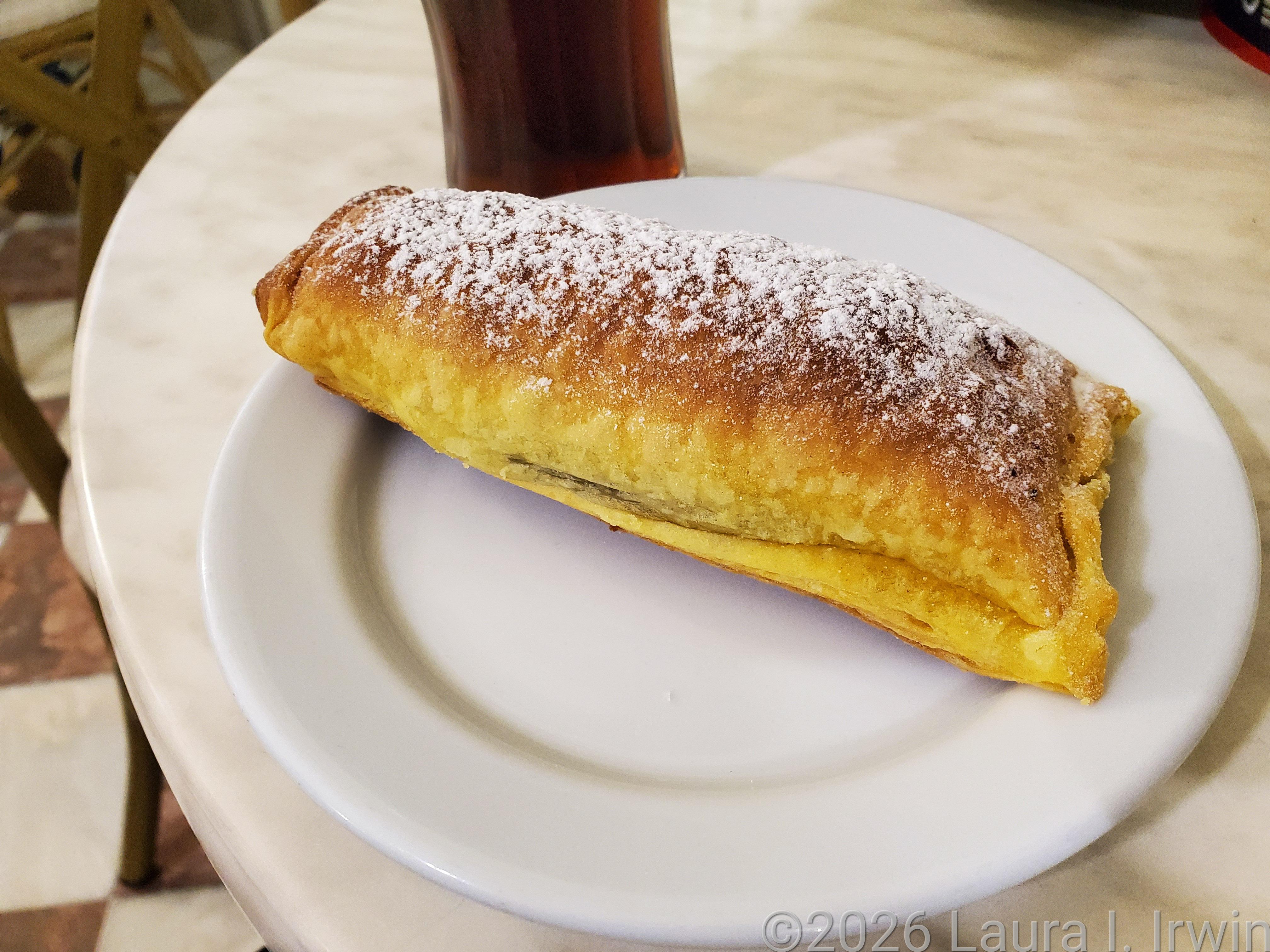 My train arrived in Sintra at 7:40AM, and I knew immediately I wasn’t in Lisbon anymore. Sintra is in the hills and has a completely different feel. From the train station, I walked into what I assume is the newer part of town before walking to the historic center. I had been planning a stop at Casa Piriquita for an afternoon snack but decided it would be just as good for breakfast. I enjoyed their famous travesseiro filled with Nutella.
