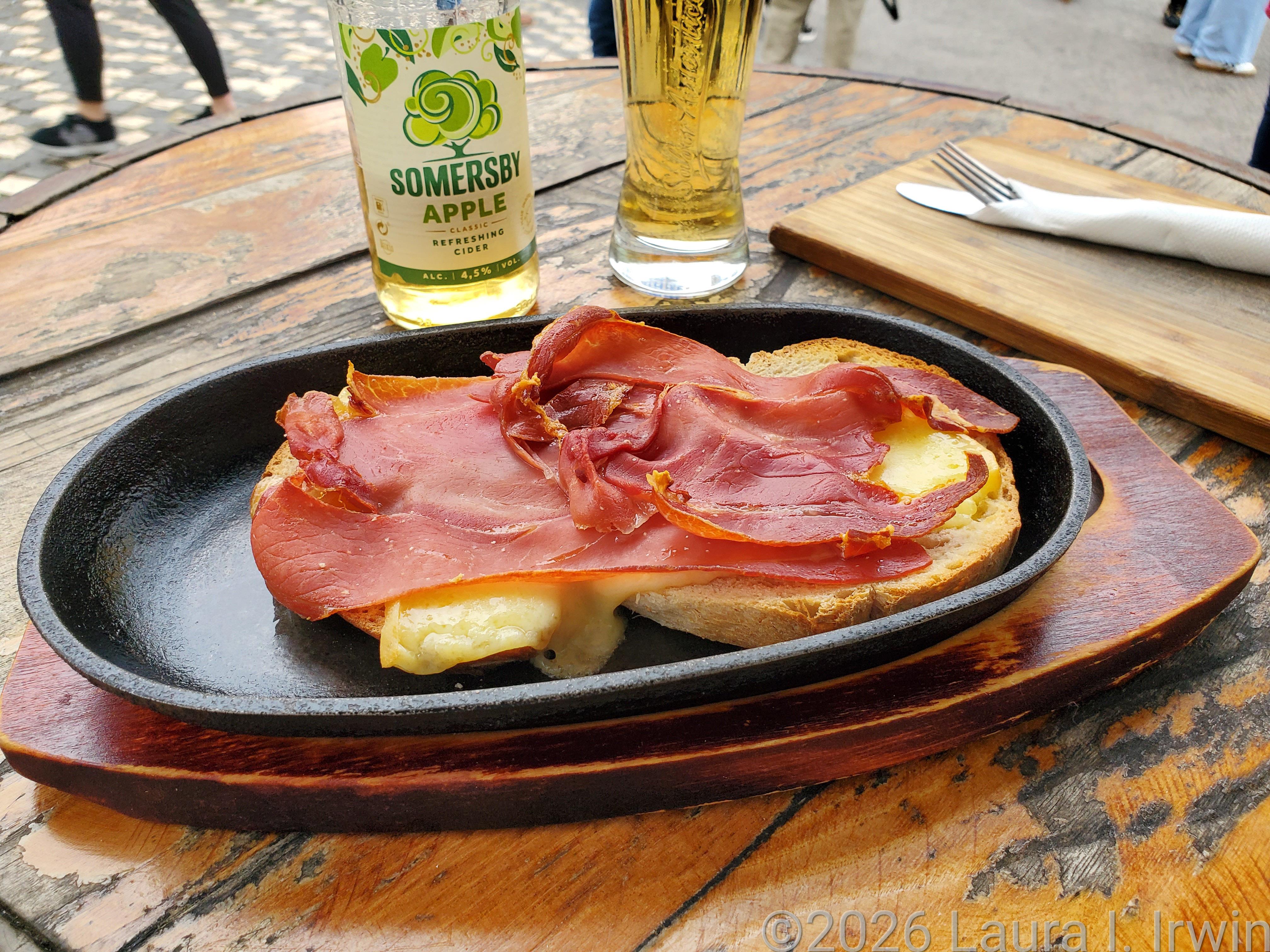 I know being hungry wasn’t helping so I grabbed an outdoor table at Loja do Vinho. I ordered a bruschetta with smoked ham and cheese and (another) Somersby cider. It was good but I was tired, cold, and my legs were feeling the effects of the day. I didn’t really care what I ate at that point.