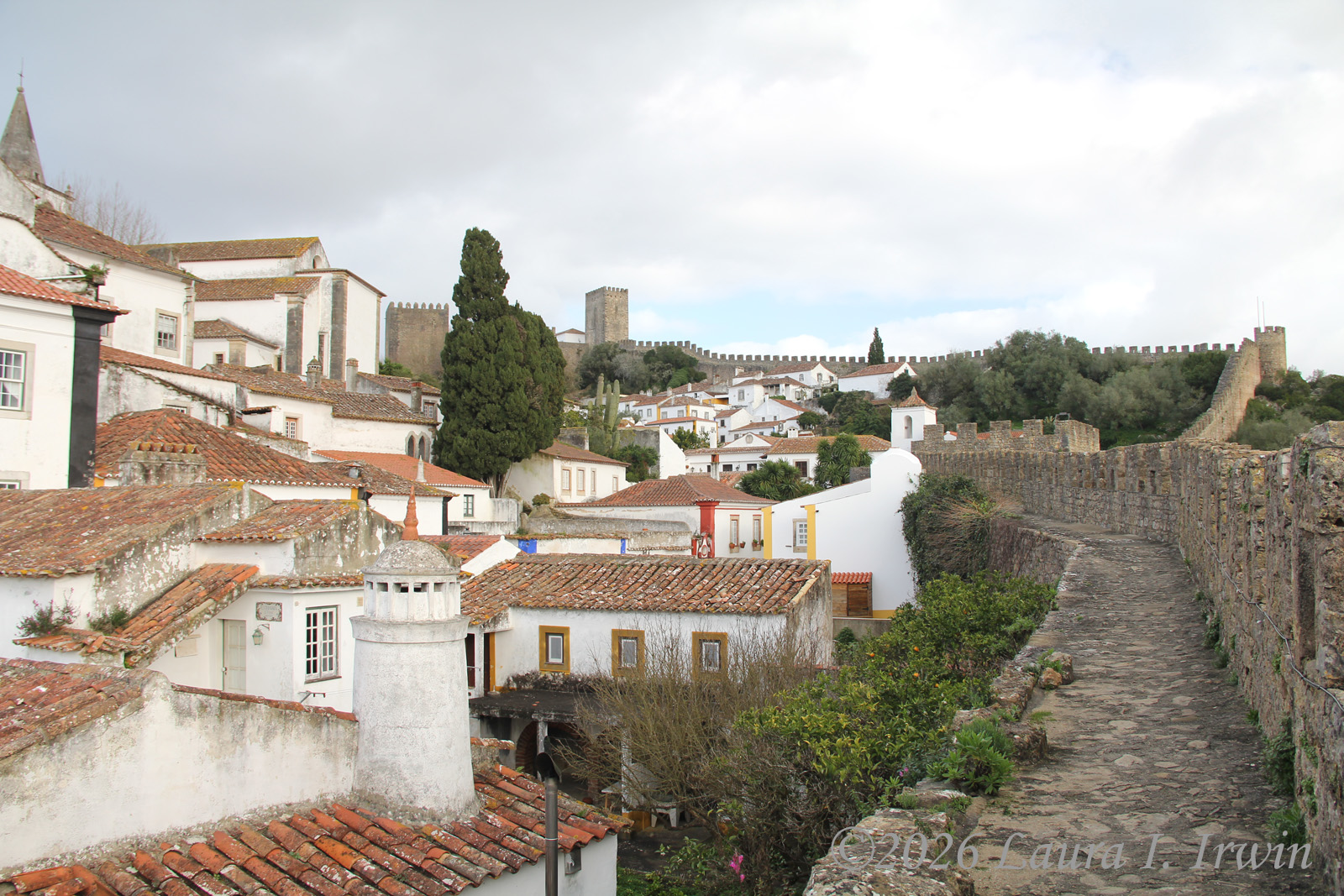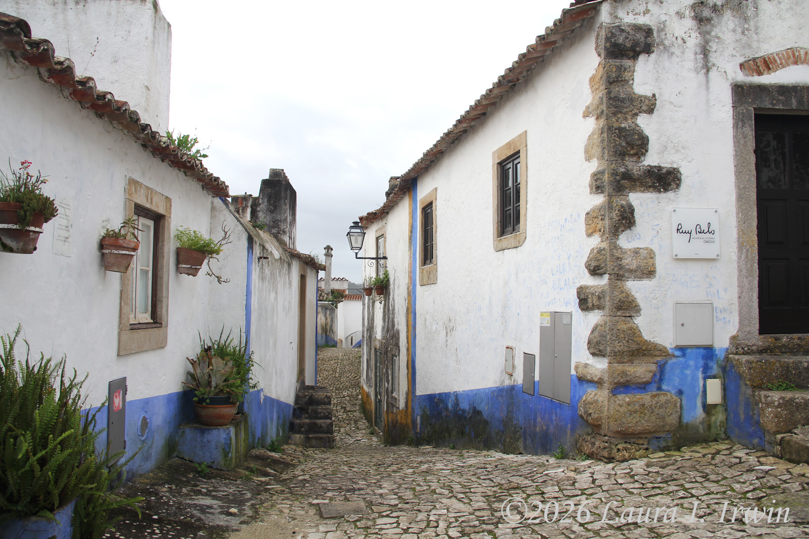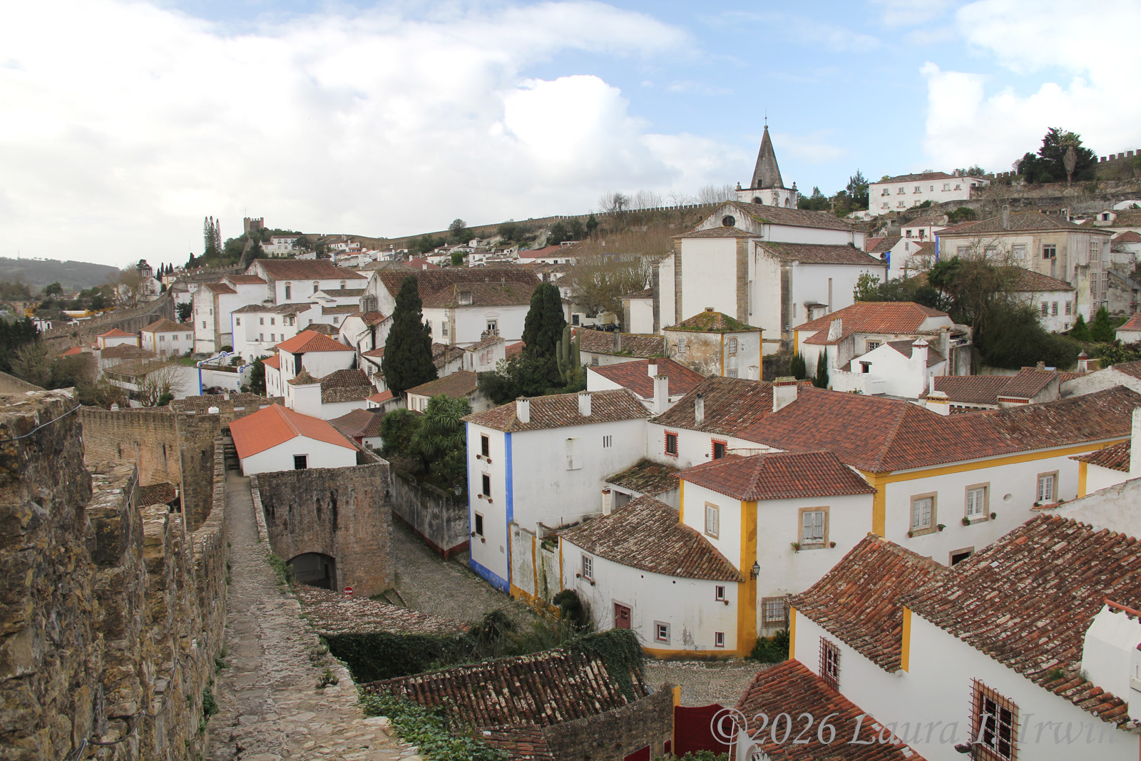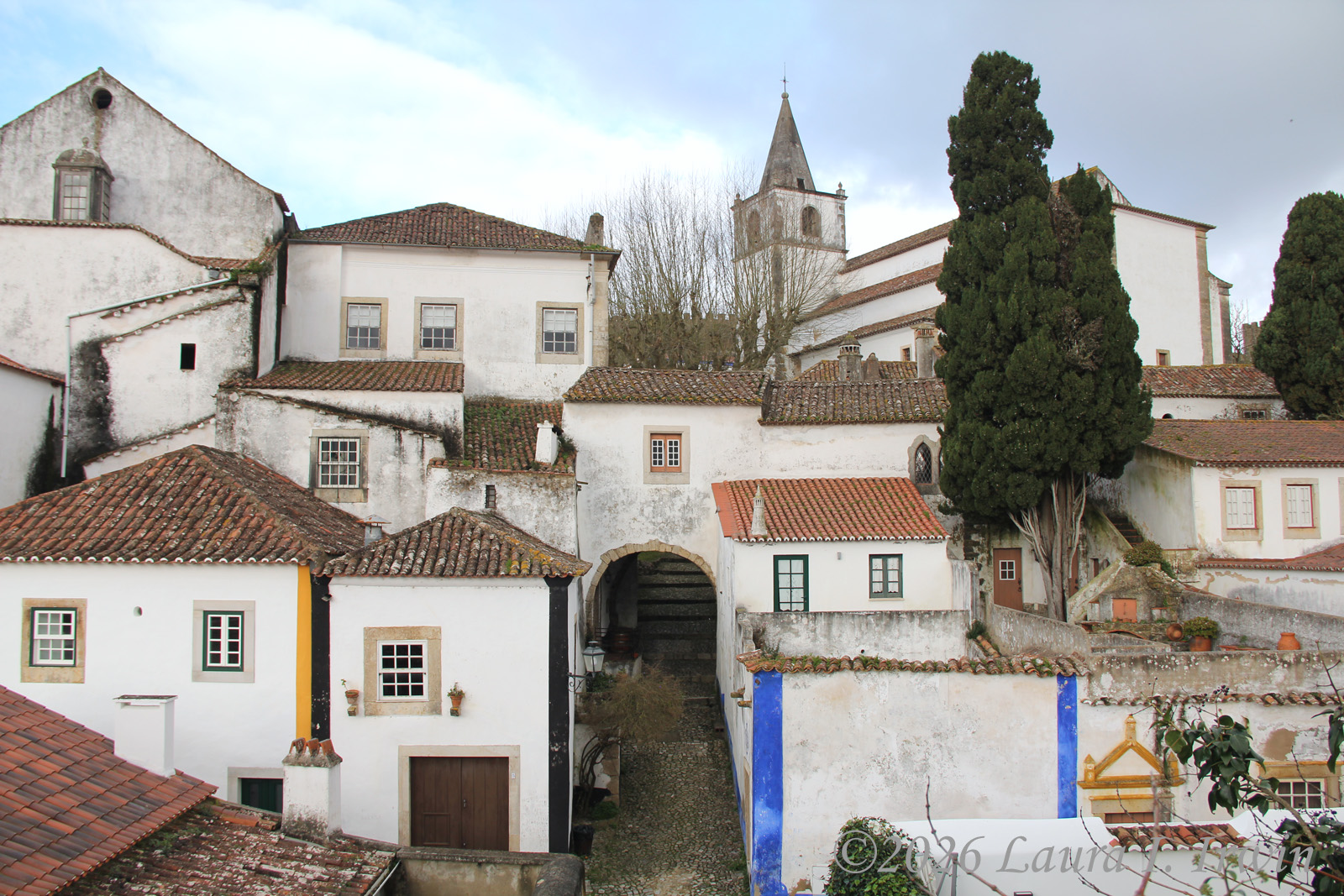 As soon as I stepped off the bus, I knew I was going to love Óbidos. The city gate is a “double elbow” style, with a small vestibule between the two offset doorways to slow down would-be attackers. Between the openings is a tiled arch and balcony where musicians often set up in a corner to serenade visitors.