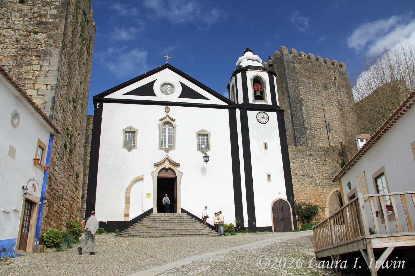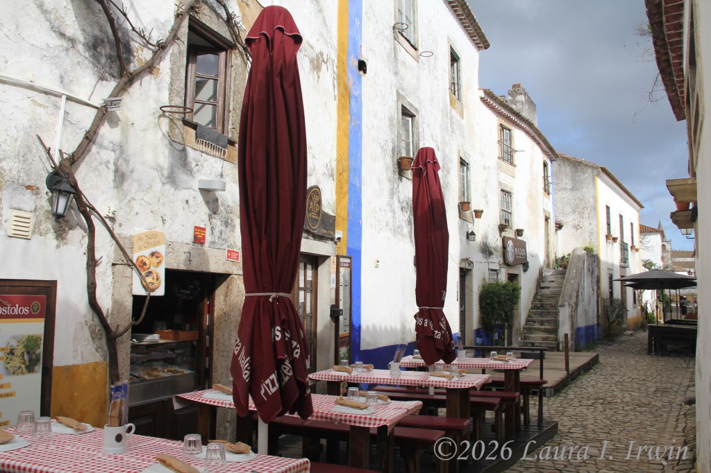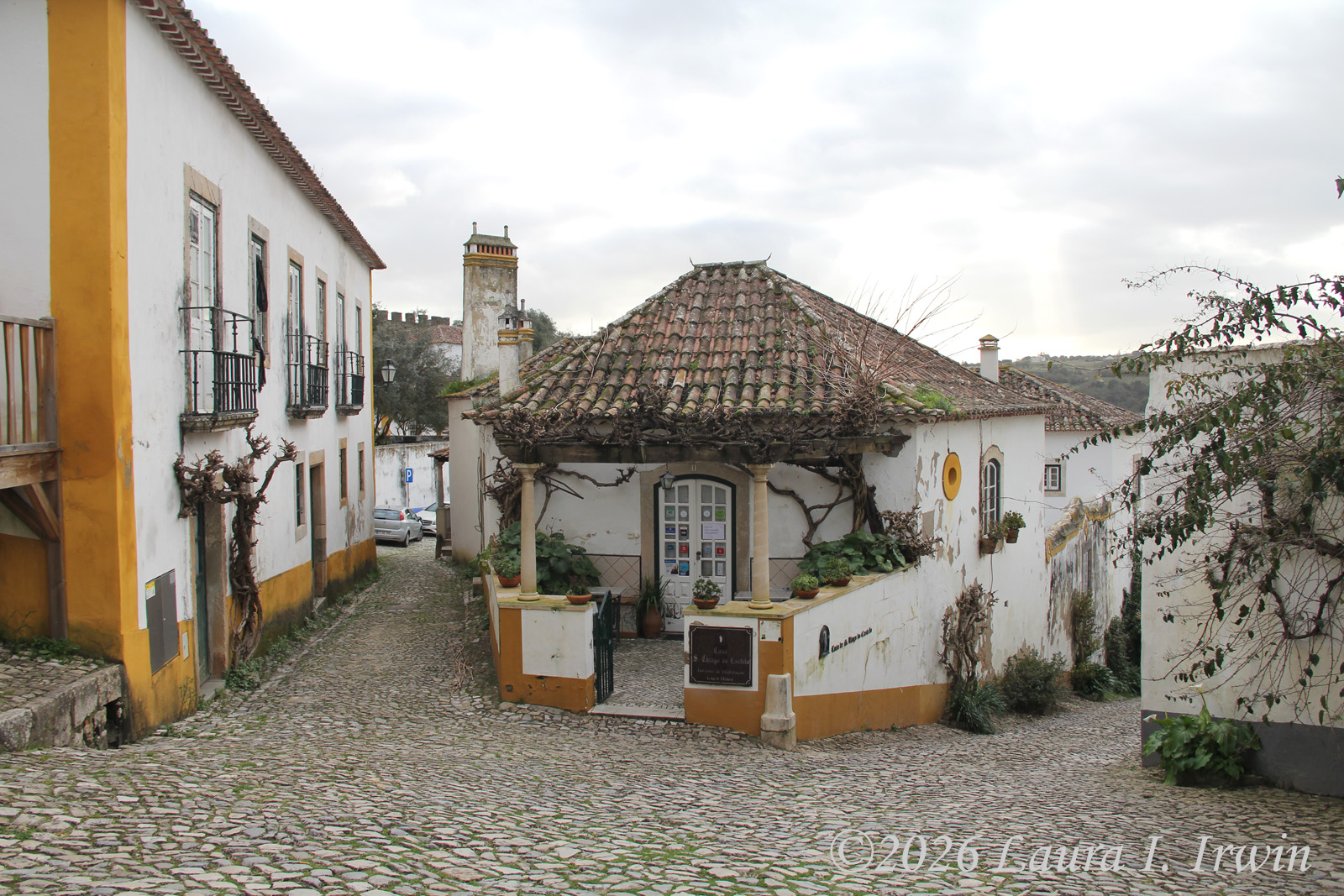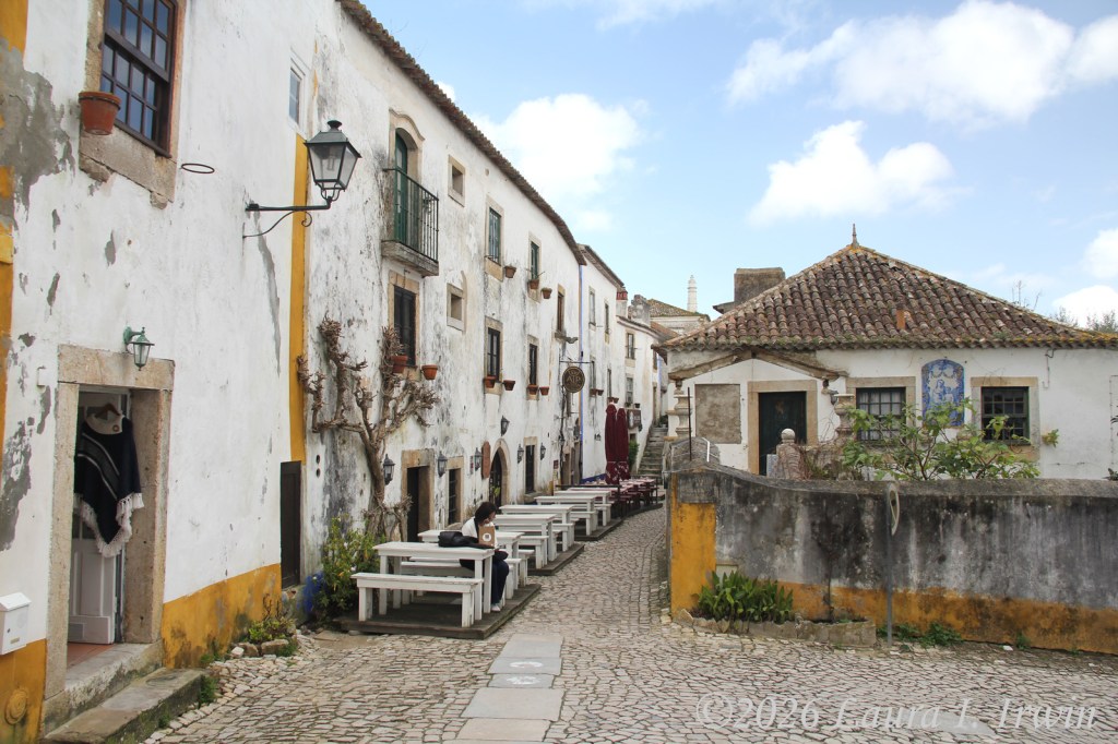 As soon as I stepped off the bus, I knew I was going to love Óbidos. The city gate is a “double elbow” style, with a small vestibule between the two offset doorways to slow down would-be attackers. Between the openings is a tiled arch and balcony where musicians often set up in a corner to serenade visitors.