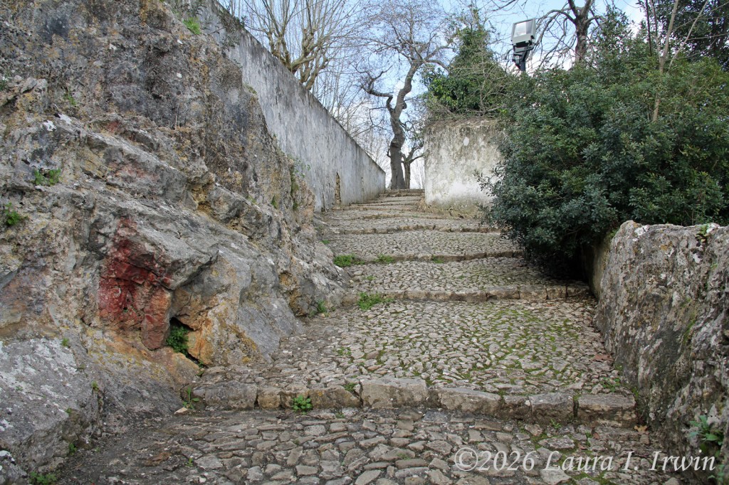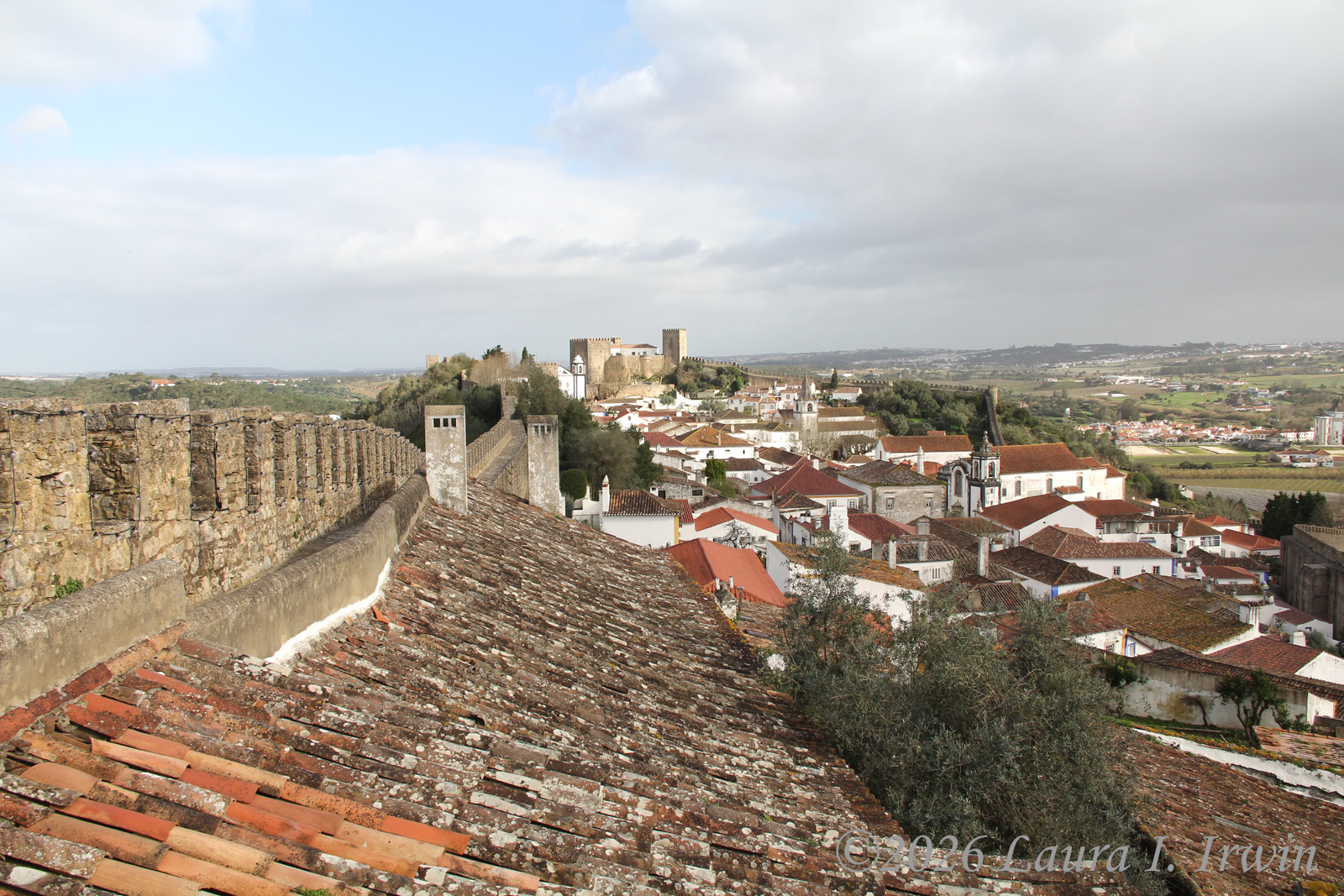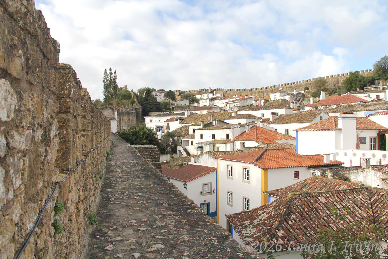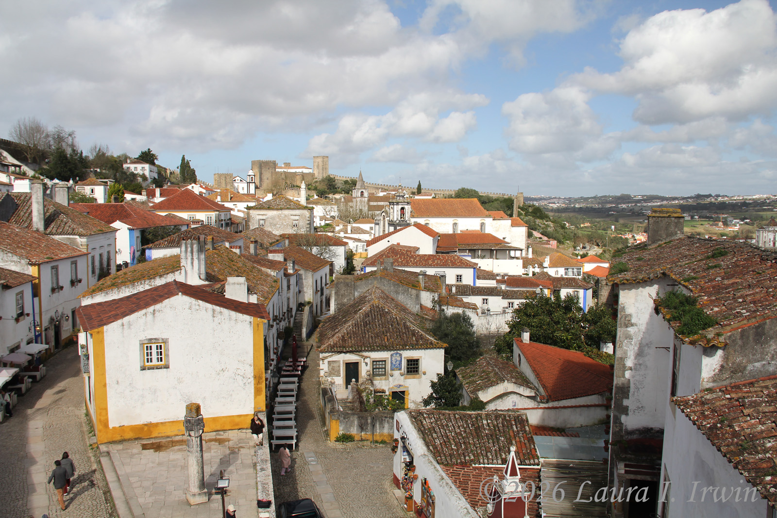 Óbidos Castle (now a hotel) was built in the 12th century and its fortifications surround the town. Precarious stone stairs lead up to the wall in several places and you can walk almost the entire distance around the town on the castle walls. The cloudy skies were broken up by some sun and blue skies as I walked the walls above the town. It was one of those times where I was reminded of how grateful I am that this is my life and I can walk the city walls of a medieval town in Portugal on a random Thursday morning.