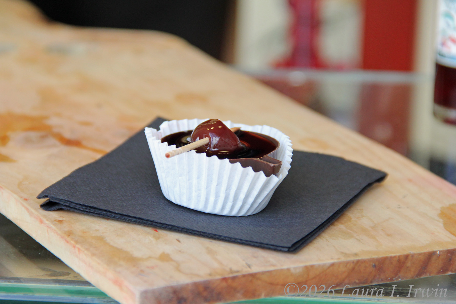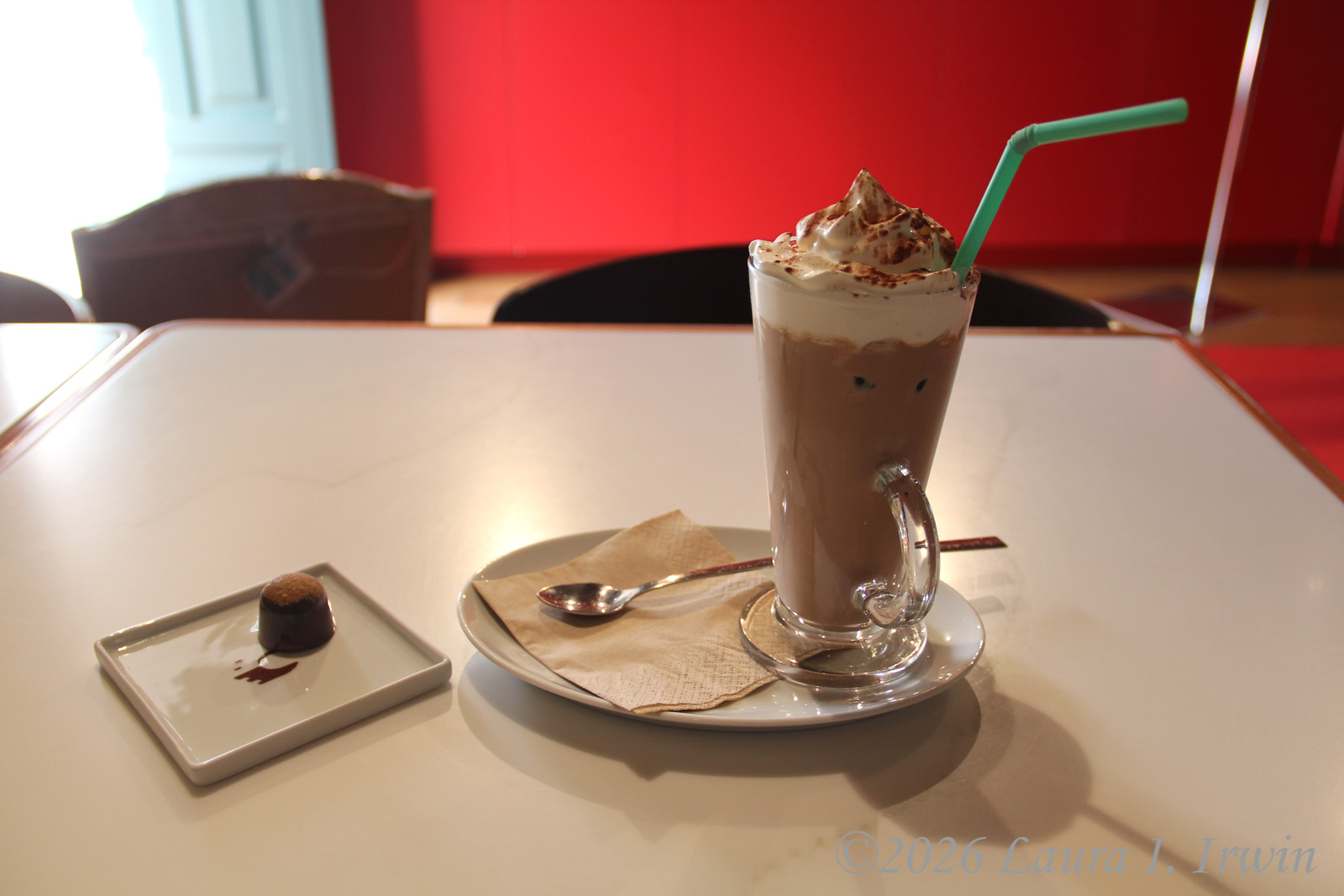 After descending from the castle walls, it was time for a snack. I headed to Óbidos Chocolate House where I decided on an iced cocoa with chantilly cream on top and a crispy salted caramel chocolate bon bon. Wow! I will be thinking of that iced chocolate for a long time to come. It was so thick and creamy, it was like drinking chocolate pudding. One bite of the bon bon had me knowing I’d be back again before I left for the day.