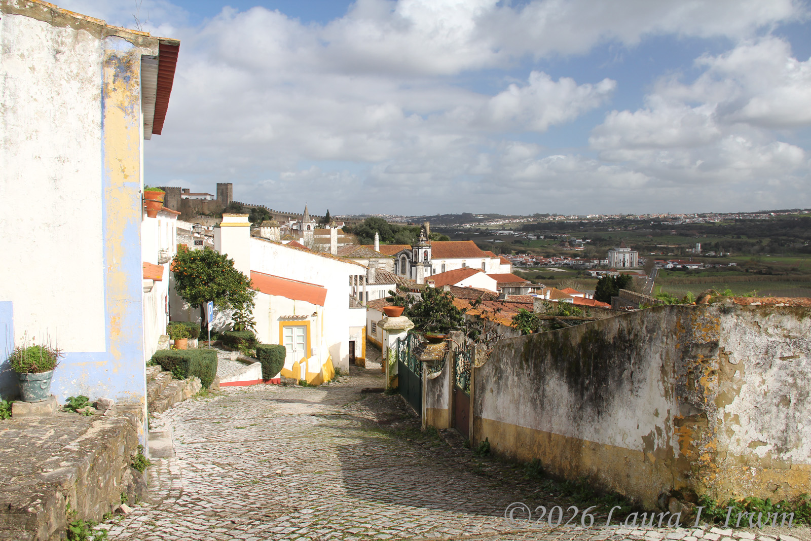 Óbidos is a town about 50 miles north of Lisbon and feels like a completely different world. This is the type of day trip I love, with few tourists and tons of photographic opportunities. I took the Metro to Campo Grande station at 6:30 this morning, where I boarded a coach bus to Óbidos. As we passed through the rolling hills north of Lisbon, the bus rolled past small towns and vineyards along the sides of the highway as the sun came up.