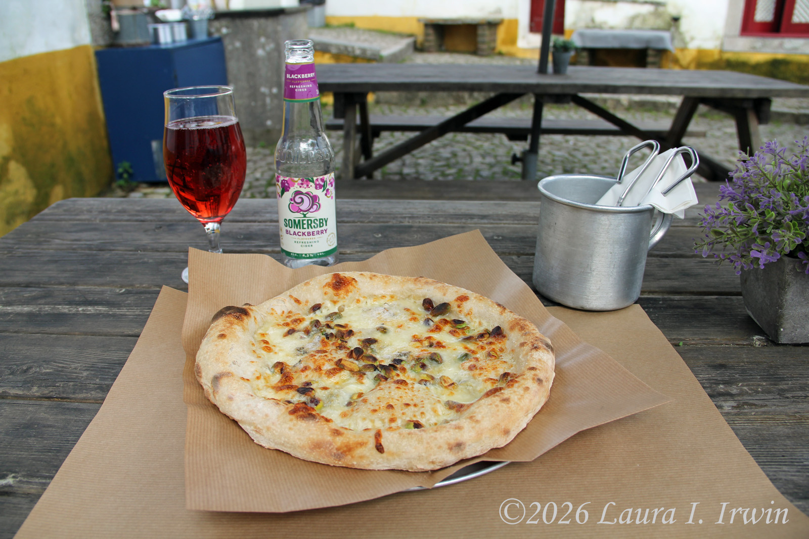 Did you think I would go on vacation and only have pizza one time? A Janela is a tiny takeout pizza window with a patio near the town gates. A sourdough pizza with mozzarella, gorgonzola, and pistachios was every bit as good as it sounds. I’ve never had pistachios on pizza but they added a crunchy, nutty texture that was unexpected and enhanced the flavor of the other toppings. I was sent to the cafe next door to get a cider (Somersby, again, but at least I got some variety with the blackberry flavor today). I enjoyed an al fresco lunch on the patio as I soaked in the relative warmth of the Portuguese sun.