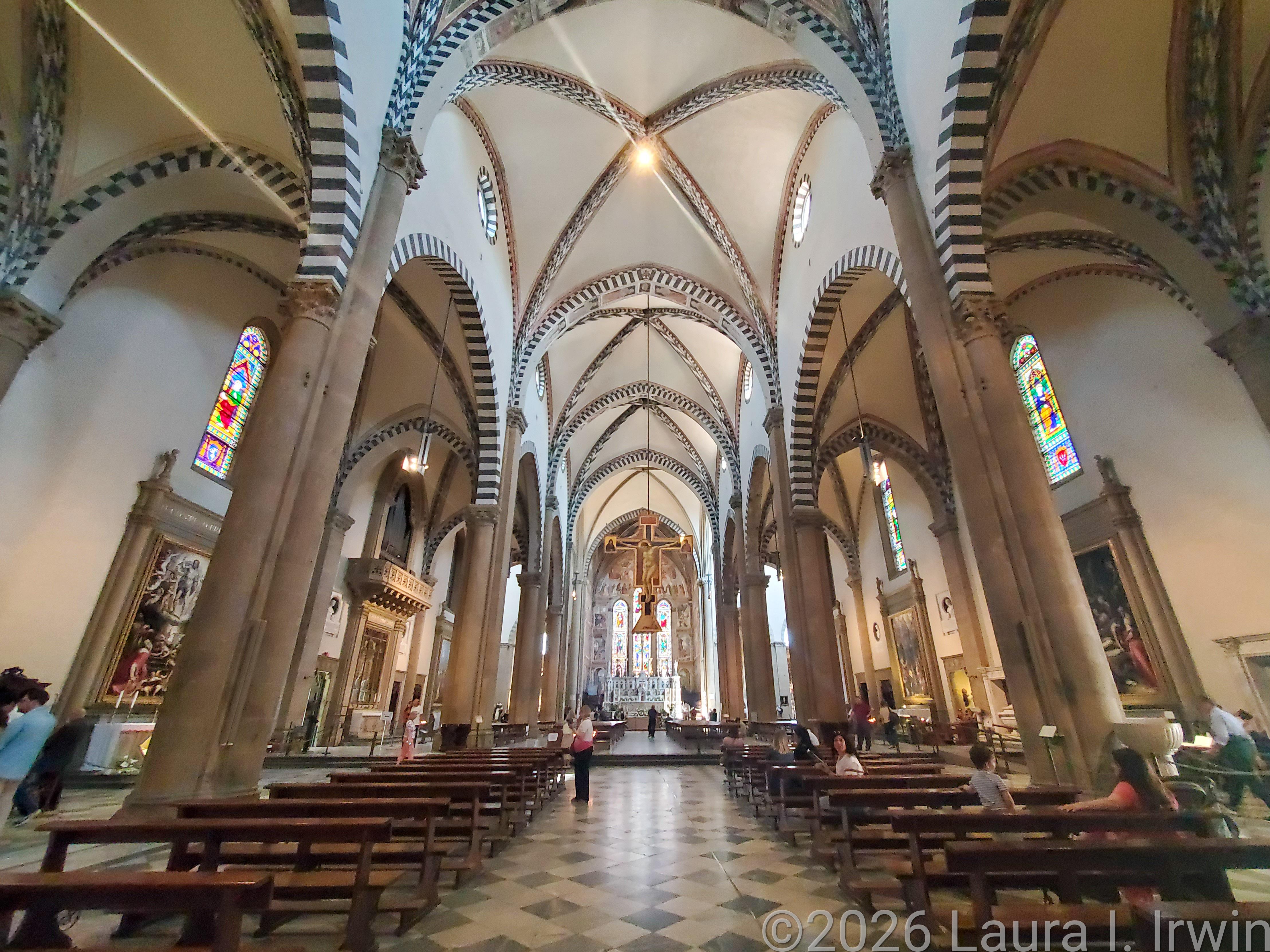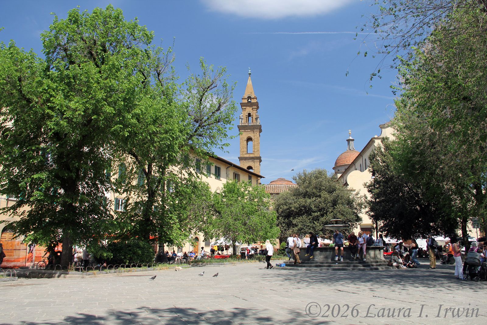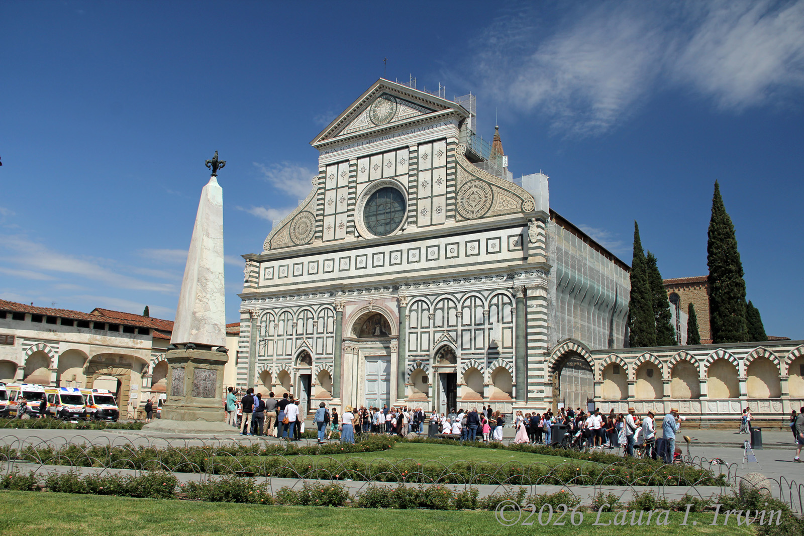 It was a quick tram ride from the airport to my hotel, where I was only able to drop off my bags before heading back out. It was a glorious 75 degrees with sunny skies today in Florence. I first made a stop at the Basilica of Santa Maria Novella, a church with beautiful chapels and several cloisters not too far from my hotel.