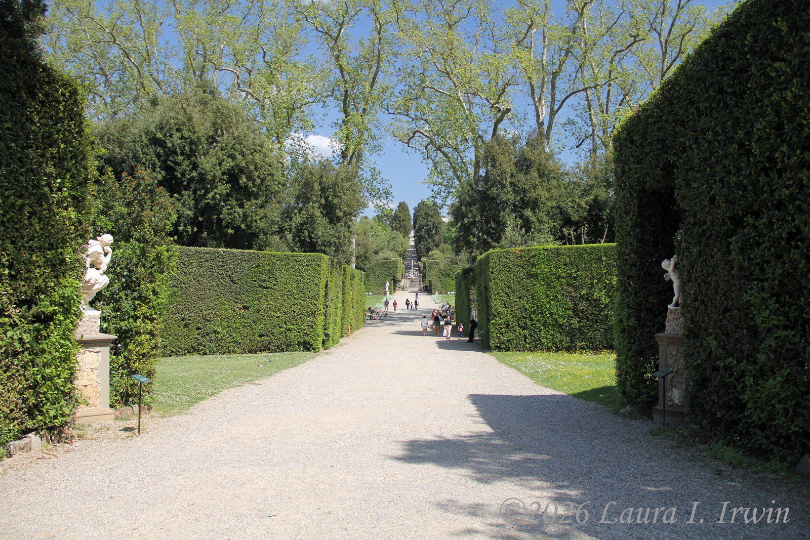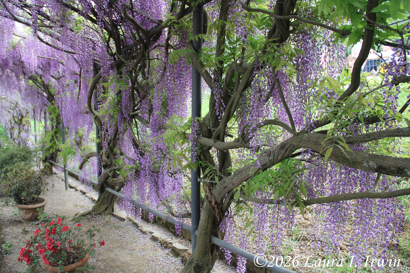 Next it was across the Arno River to visit the Oltrarno neighborhood (literally, the “other side of the Arno”). I wandered around a little and then made my way up to the Boboli Gardens. The gardens are quite popular, especially on a sunny Saturday afternoon. While I enjoyed my walk, the gardens are built on a hill and are filled with mostly hedge-style gardens and sculptures, rather than flowers. It’s also quite large and took me almost two hours to see. Since I could save 5 euro by visiting the Bardini Gardens on the same day, I took advantage of the deal. Had I looked more closely at pictures online before visiting, I would have prioritized the Bardini Gardens. There were more flowers there, including a wisteria pergola in full bloom. As it was, I was tired, hungry, and thirsty so I maybe saw half of it before heading to the exit.