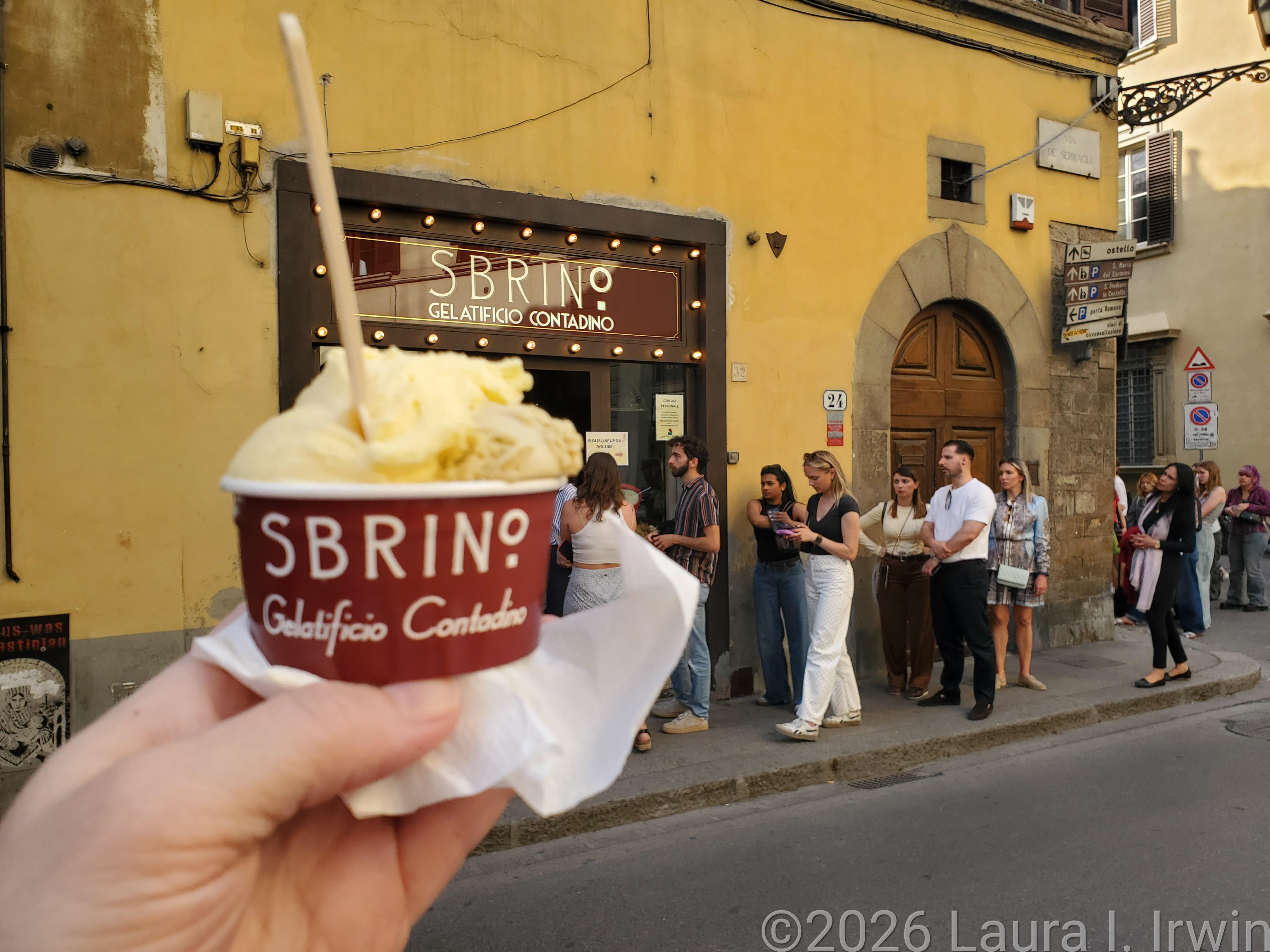 By the time dinner was over, I was pooped. I had time and room in my stomach for a stop at Sbrino Gelato for a small cup of pistachio and egg cream gelato on my way back to the hotel. My first hotel room was cramped and awkward, but (luckily for me) there were also a few issues with it so I was moved to a more spacious room with a balcony that has a better view of the Tuscan hills. And if you’re reading this shortly after it was posted, it is now Sunday morning. I hit my wall quickly last night and opted for sleep over finishing the blog and editing pictures. (Don’t worry… there will be another blog post coming later today!)