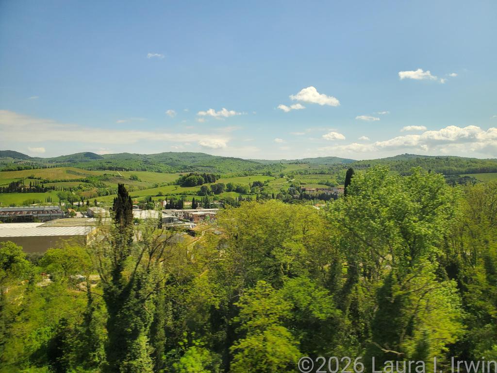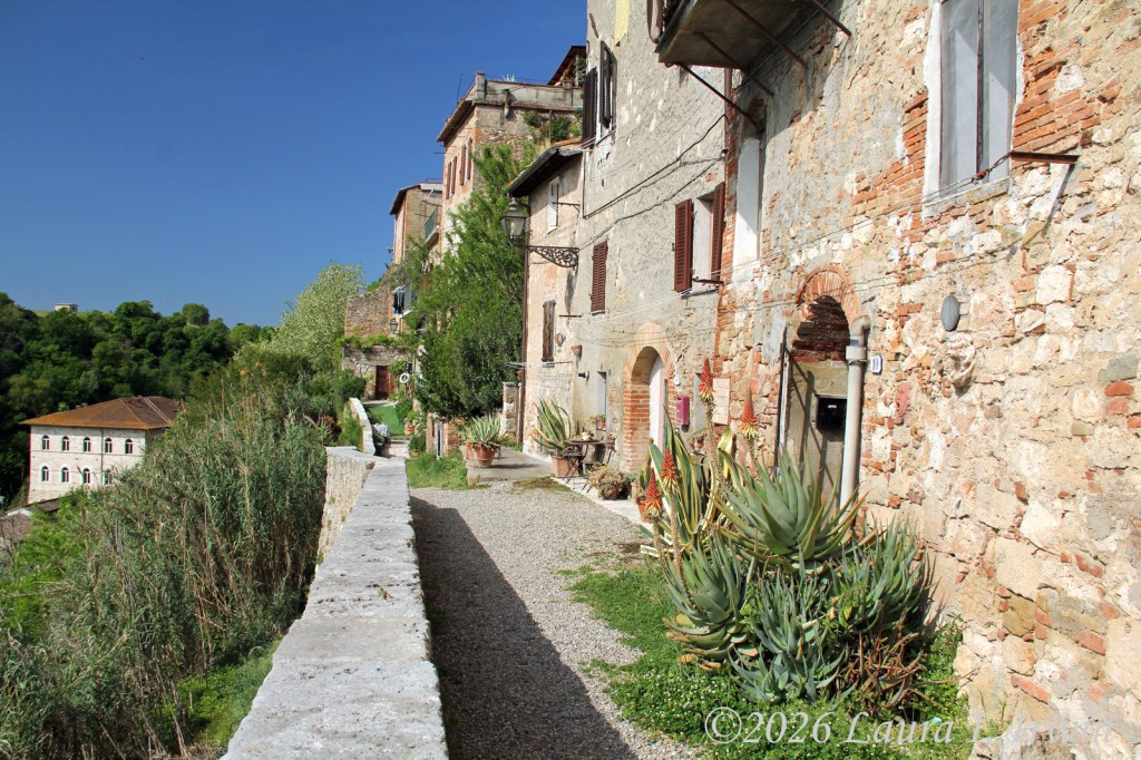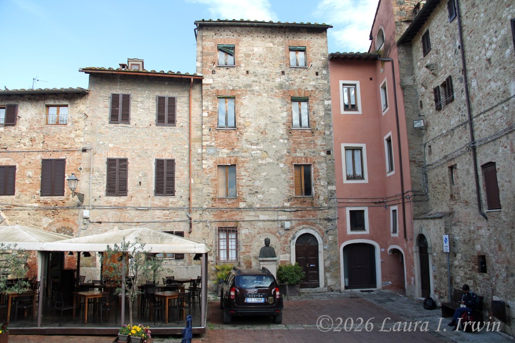 Tuscany. Just the name evokes images of rolling hills, vineyards, and roads lined with cypress trees. Today was my first day exploring one of the many tiny villages and hill towns that dot the Tuscan countryside. Colle di Val d’Elsa wasn’t even on my radar and didn’t appear in any of my searches for “quiet Tuscan hill towns”. Instead, I found it by accident on YouTube, where I watched a video of a couple exploring the town in mid-August (prime tourist season) with nary another person in the video. My kind of place. (As it turns out, it may have been a little too quiet for my taste.)