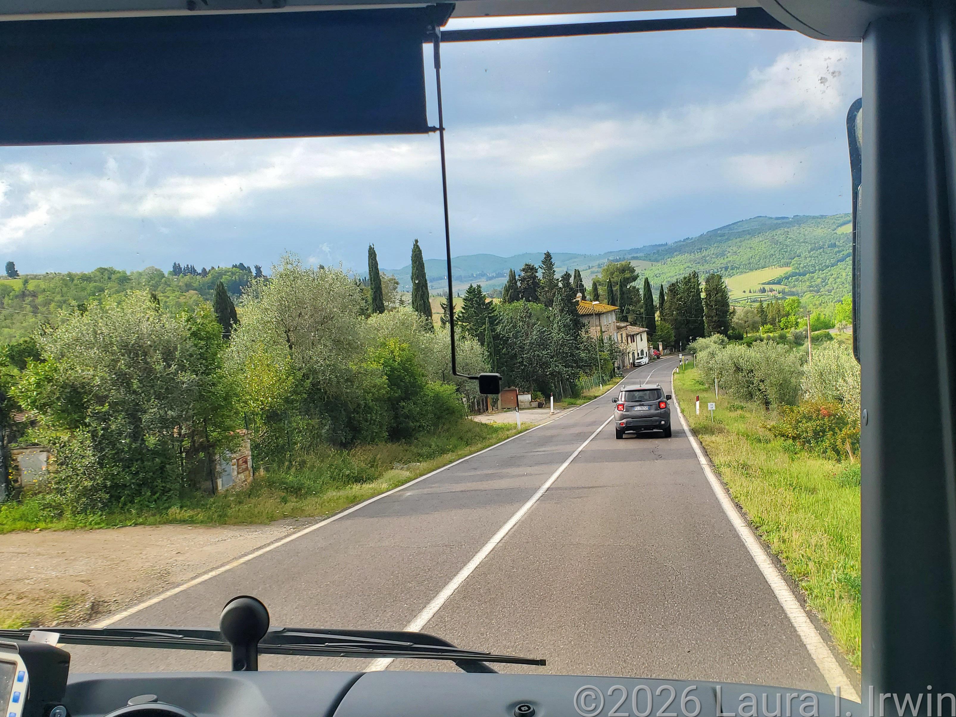 I started my day just down the street from my hotel, at the corner cafe, Bar Arcobaleno. I grabbed a croissant filled with custard and a small lemon soda before heading to Firenze HUB Montelungo, the weird suburban bus stop not far from my hotel. I’m glad I got there early because there was no ticket office, so I was on my own to navigate the ticket kiosk, which I guess I did successfully because they let me on the bus. The bus ride to Greve-in-Chianti is about an hour and drops off near the main piazza. Along the way, we left the big city behind and were surrounded by rolling hills and vineyards galore.