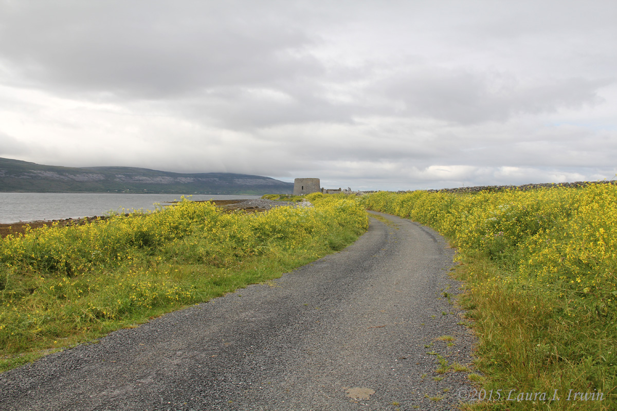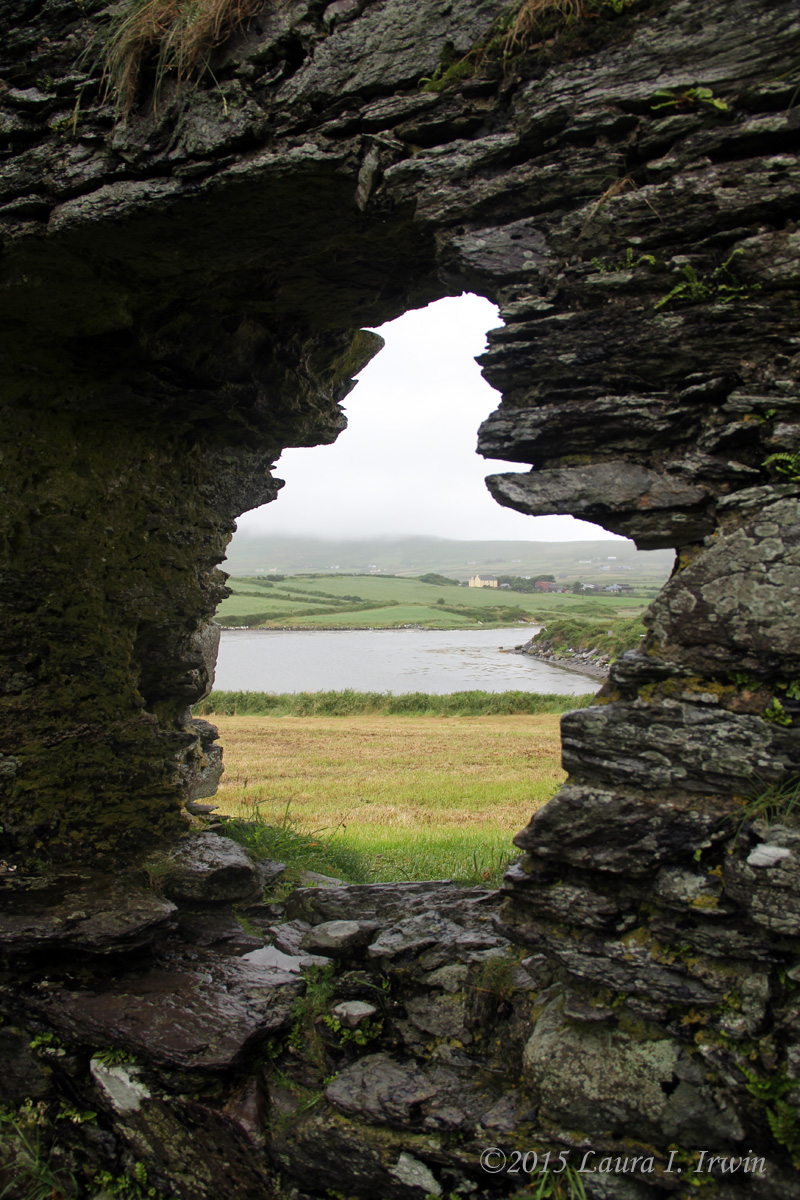 But there were some bright spots to the otherwise dreary day. I spent about an hour and a half exploring Ballycarbery Castle and the two nearby stone forts. The castle dates to the 1500s and stands high in a field overlooking the river Fertha. You can look into the first floor rooms, but the fun (at least for me) was climbing up the narrow stone steps at the back and exploring the rooms above the main floor. The fact that these old ruins are just sitting there and that you can just drive up and start exploring continues to amaze me!