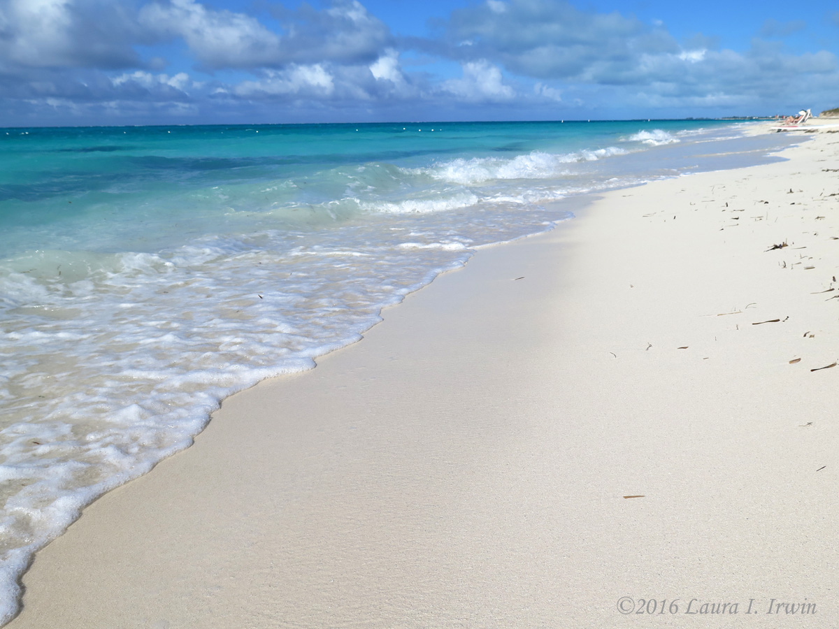 A very windy final day on Grace Bay!  The waves were crashing this morning as I set out for my beach walk.  I didn’t make it as far as I have previous days because I couldn’t find much hard-packed sand to walk on.  Breakfast this morning was at Bay Bistro, located directly on the beach at the Sibonne resort, right next door to The Sands.  I walked over and enjoyed French toast while I watched the waves roll in.  Despite the winds, the water was still a beautiful green (with some whitecaps mixed in).  After breakfast, I quickly slathered on the sunscreen and made my way to the pool.  The beach was way too windy to be comfortable.